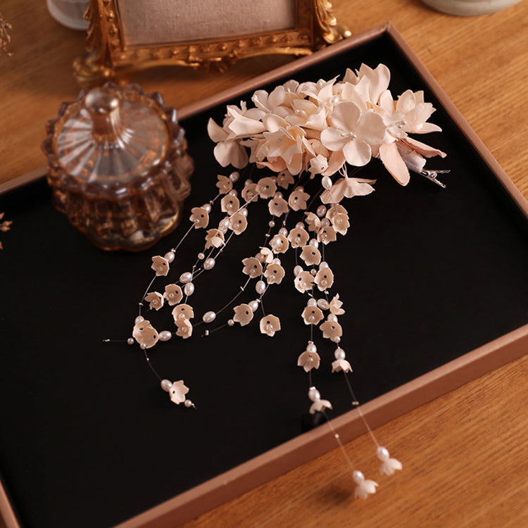 Flower Hair Clips Girls Hanfu Hair Accessories Flower Hairpin Tassel Pearl Bridal Headpiece Ancient Party Head Jewelry Headwear