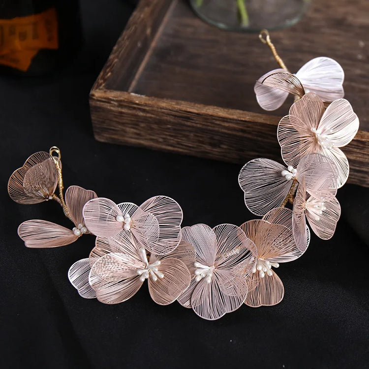 Flower Hairbands Bride Tiaras Wedding Hair Jewelry For Women Pearl Headband Exquisite Party Headdress Marriage Hair Accessories