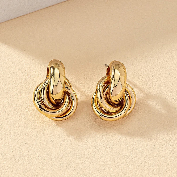 Gold SIlver Color Knot Stud Earring For Women Shiny Color Trendy Earring Stud Cute Daily Wear Jewelry
