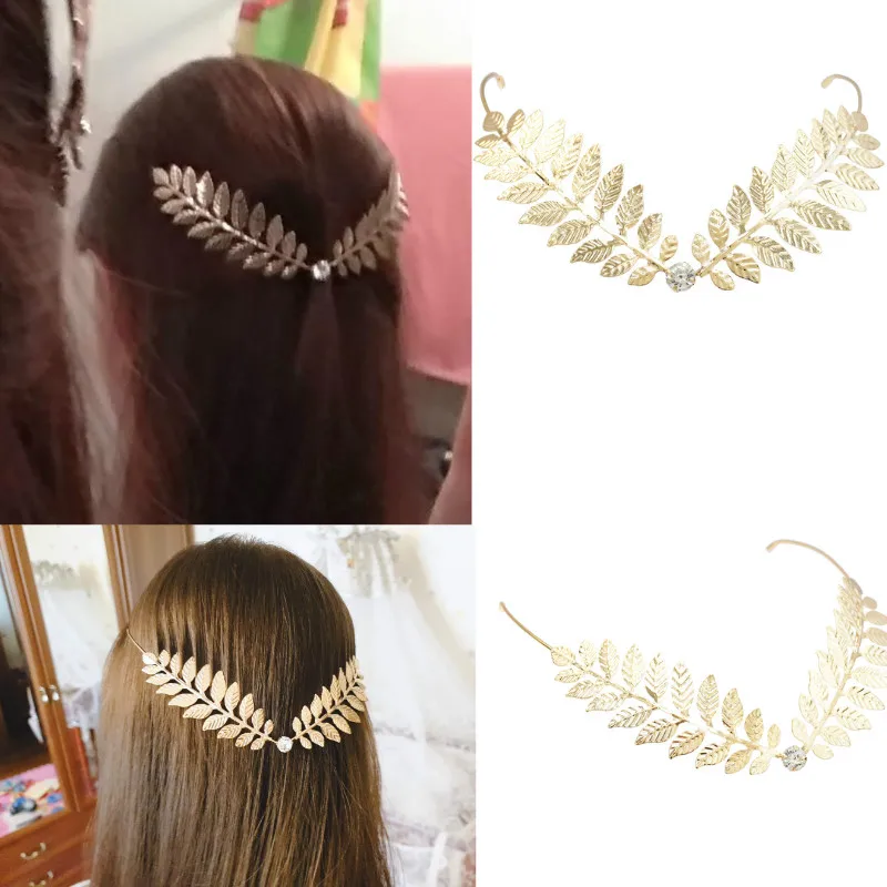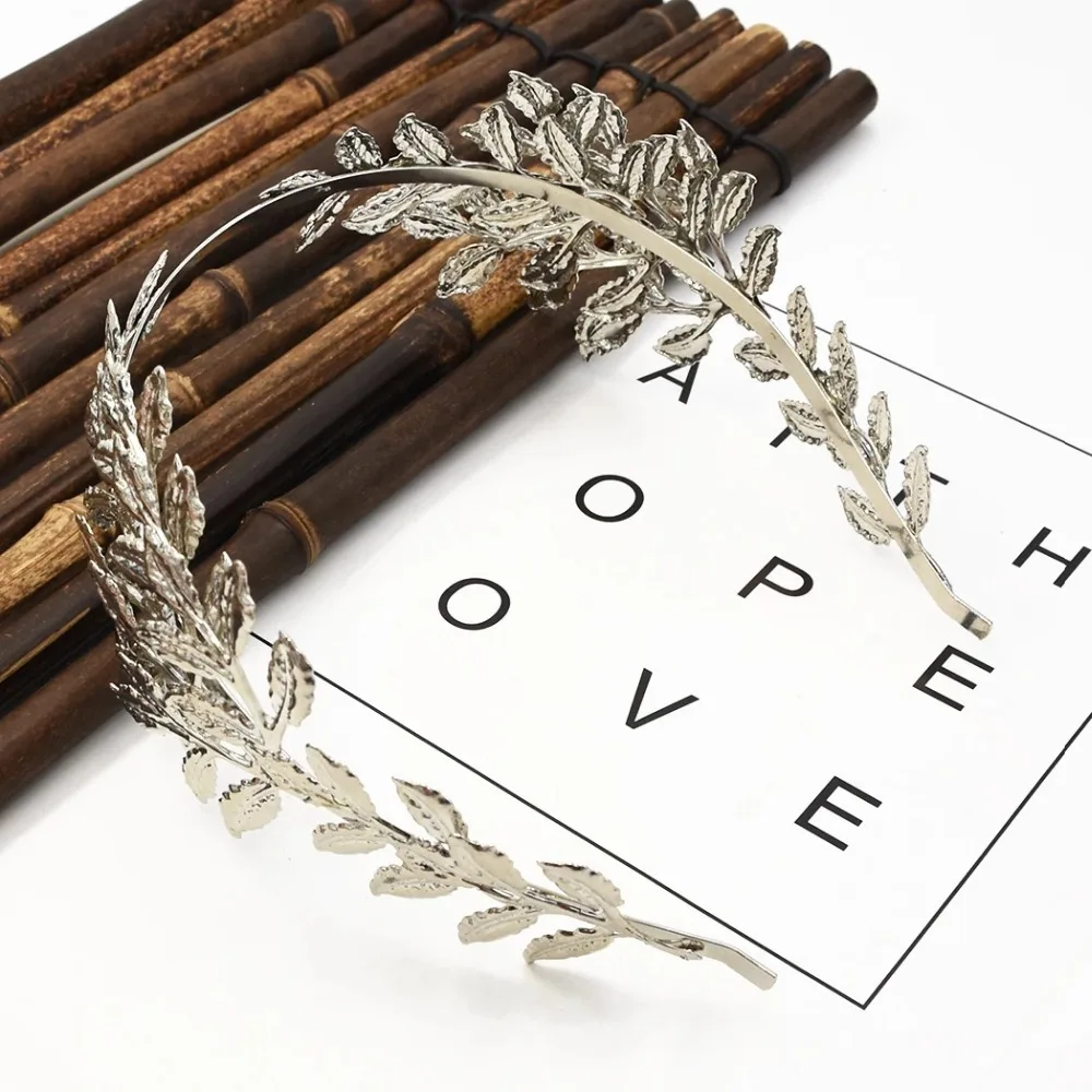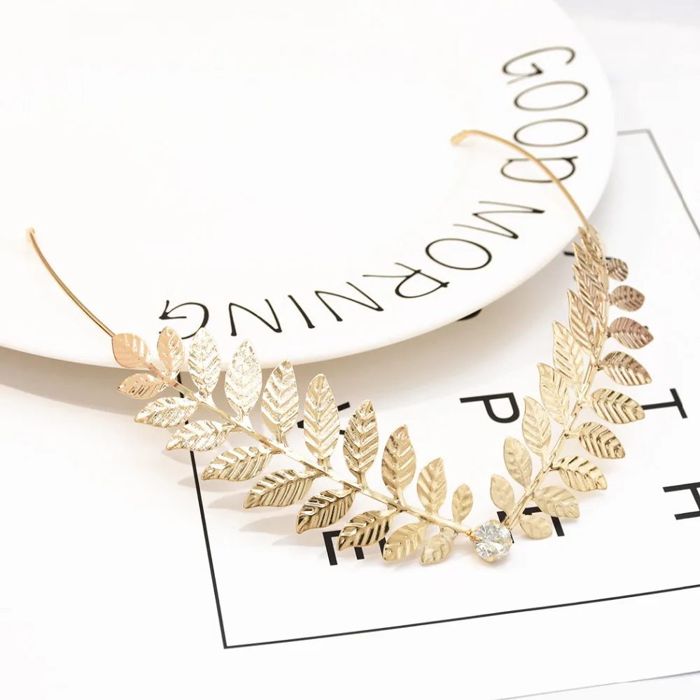 Greek Roman Goddess Metal Olive Leaf Headbands Diadema Hair Accessories Tiara Crown Golden Headpiece Bridal Wedding Head Jewelry