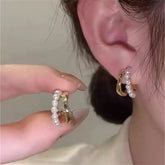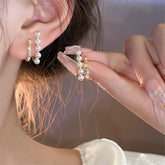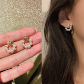 Korean Shiny Crystal Rhinestone Pearl Earrings for Women Girl Geometry Handcrafted Micro Paved Flower Heart Stud Earring Jewelry