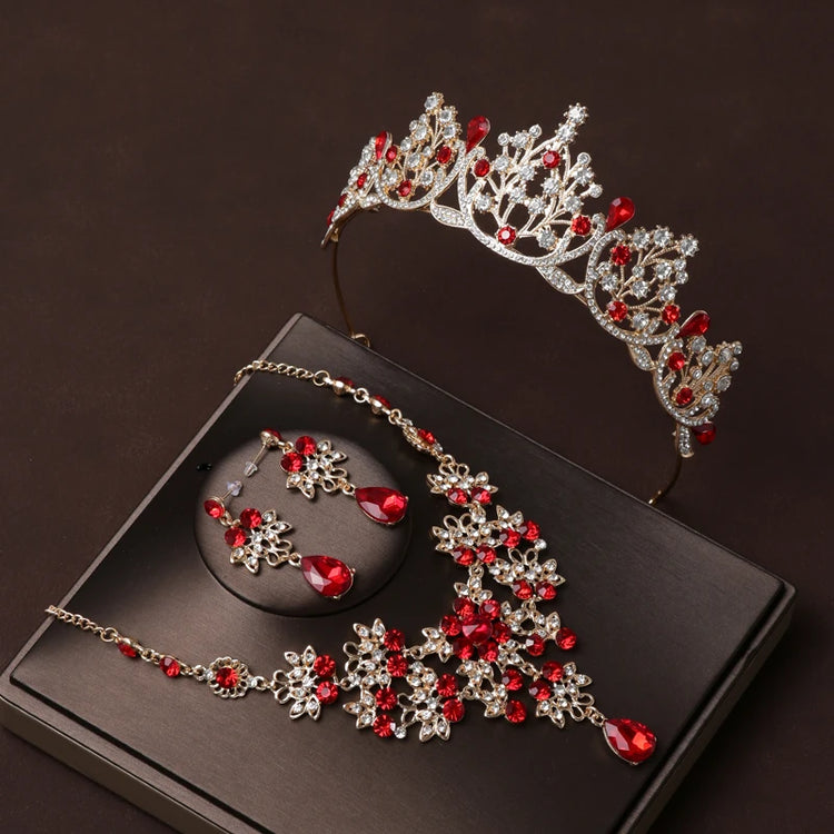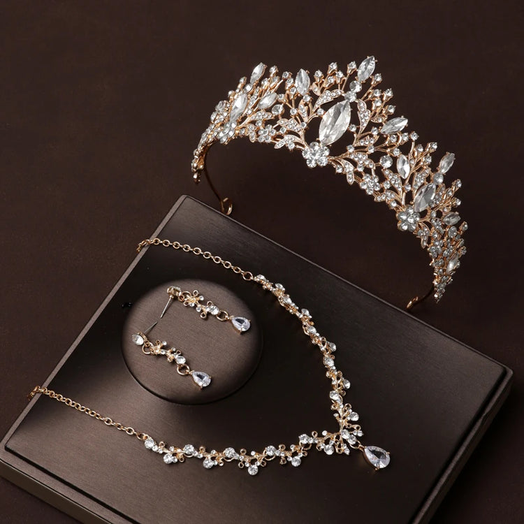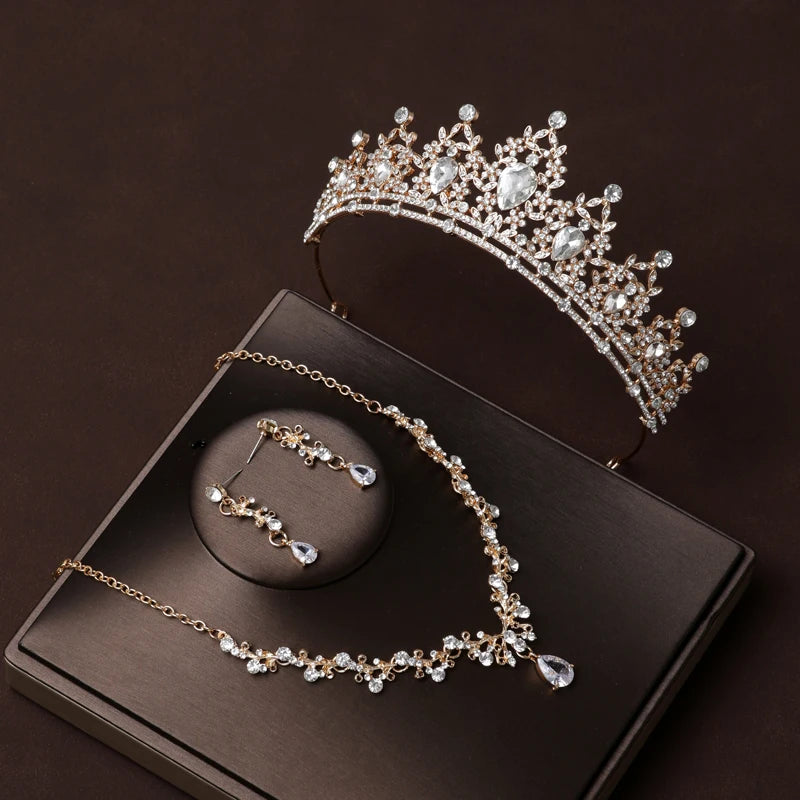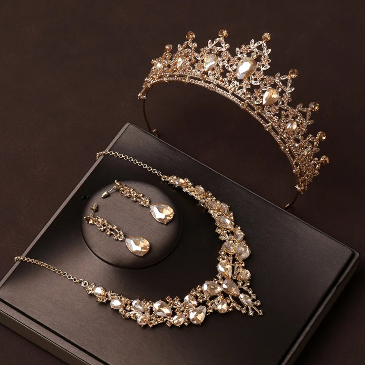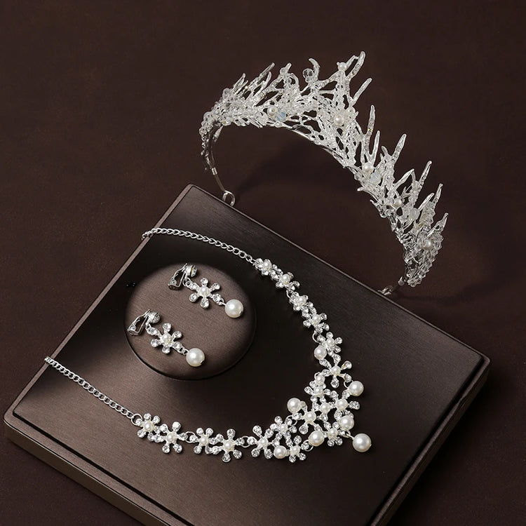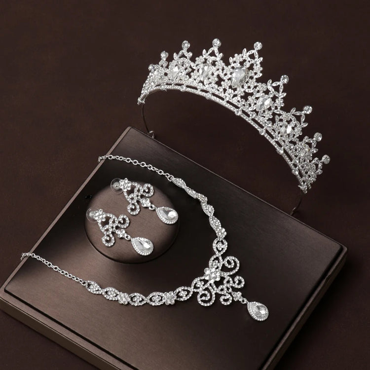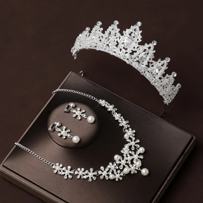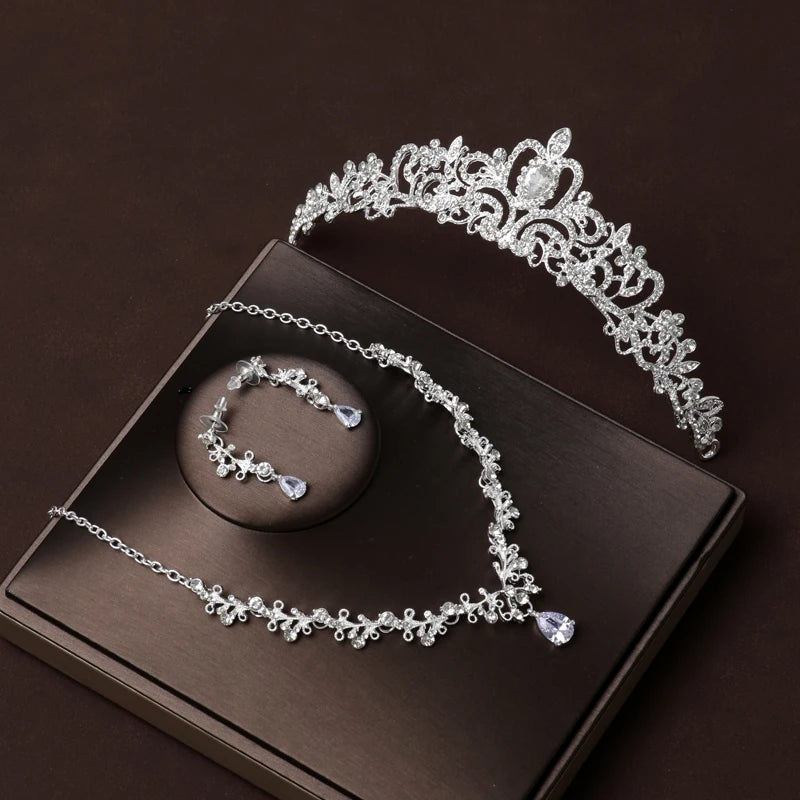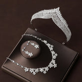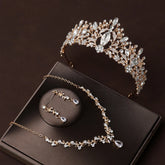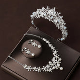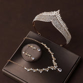 Itacazzo Bridal Headwear Set Crown Necklace Earrings Four Piece Classic Tiaras Suitable for Women's Wedding and Birthday Parties