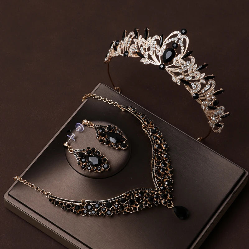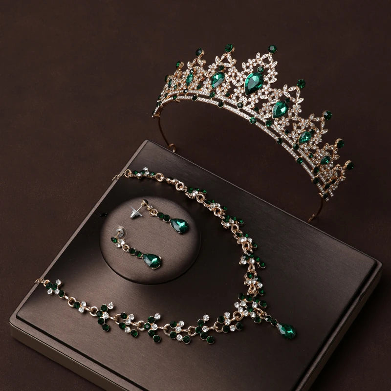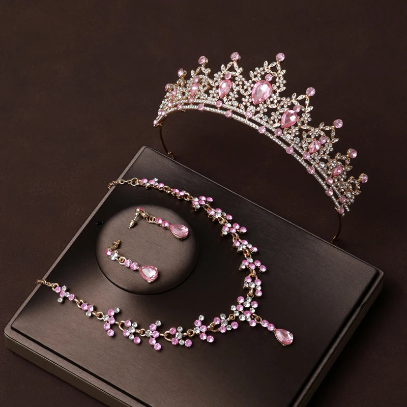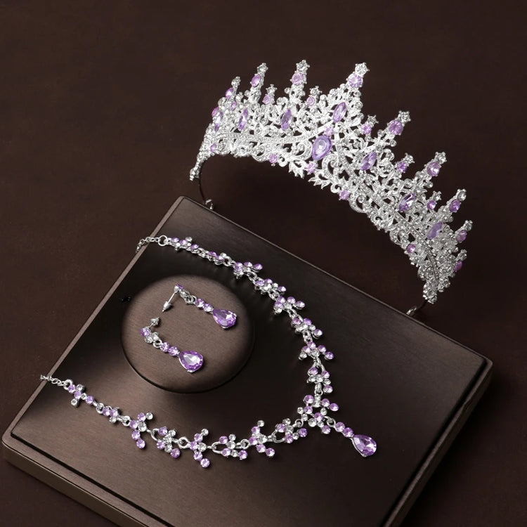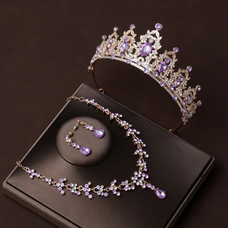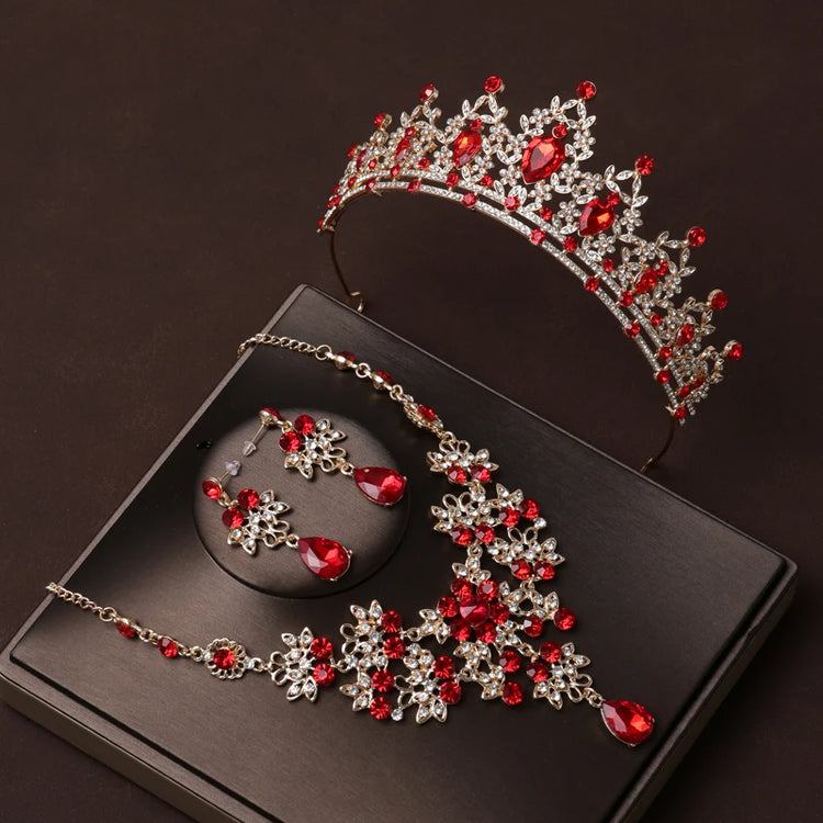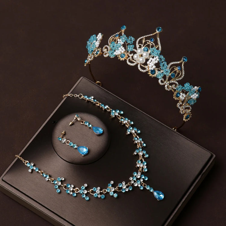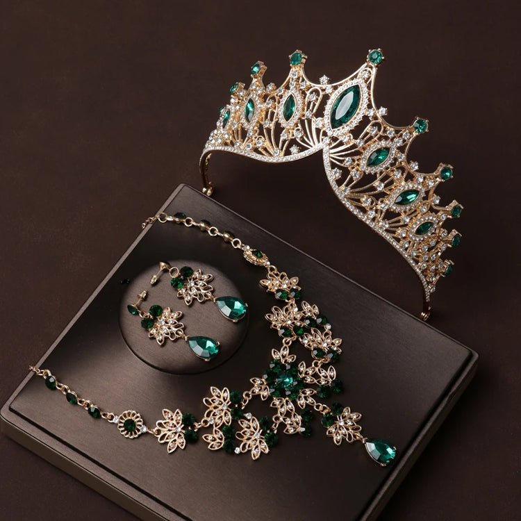 Itacazzo Bridal Headwear Set Crown Necklace Earrings Four Piece Classic Tiaras Suitable for Women's Wedding and Birthday Parties