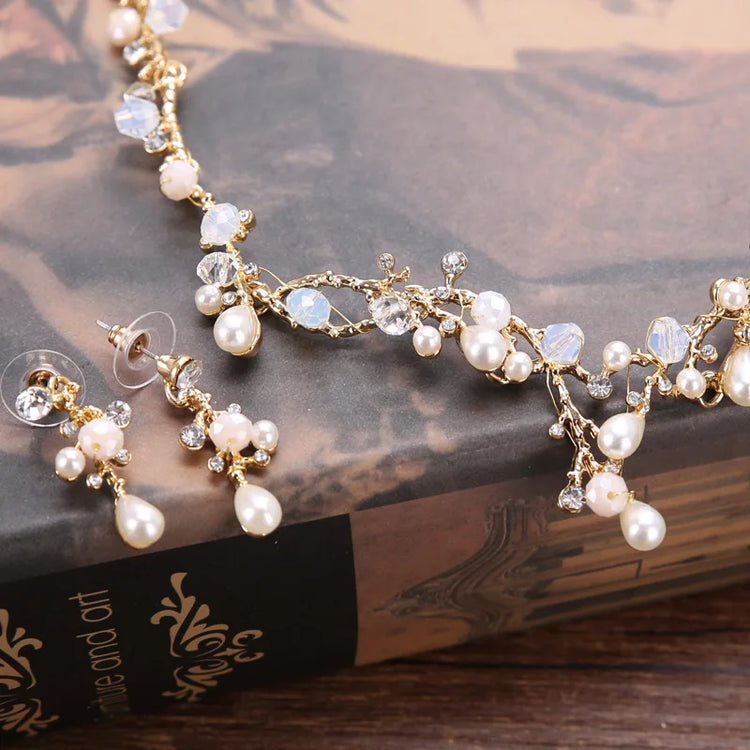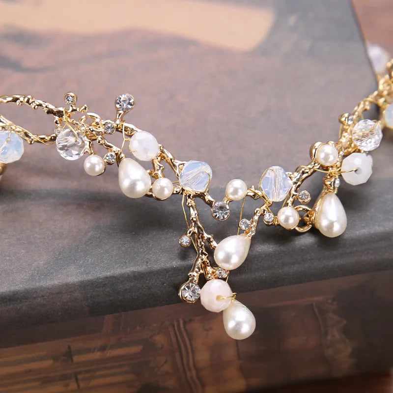 KMVEXO New Coming Bride Headdress Retro Hair Jewelry Gold Color Pearl Rhinestone Flower Crown Women Wedding Accessories