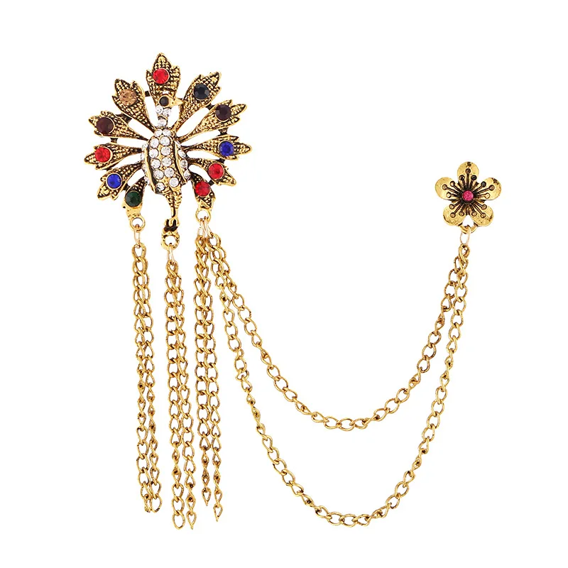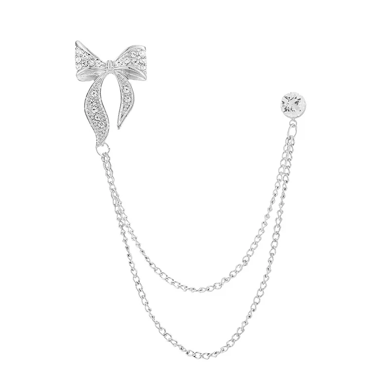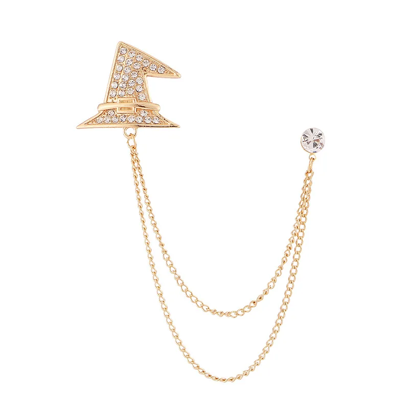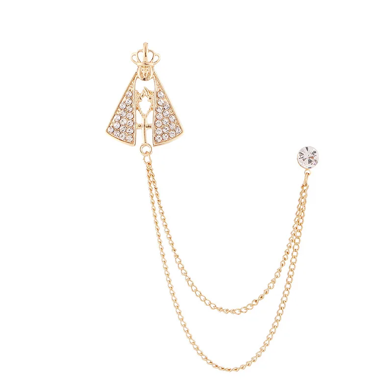 Korean Crystal Crown Brooch Star Tassel Chain Rhinestone Lapel Pins Men's Shirt Suit Collar Wedding Party Badge Accessories