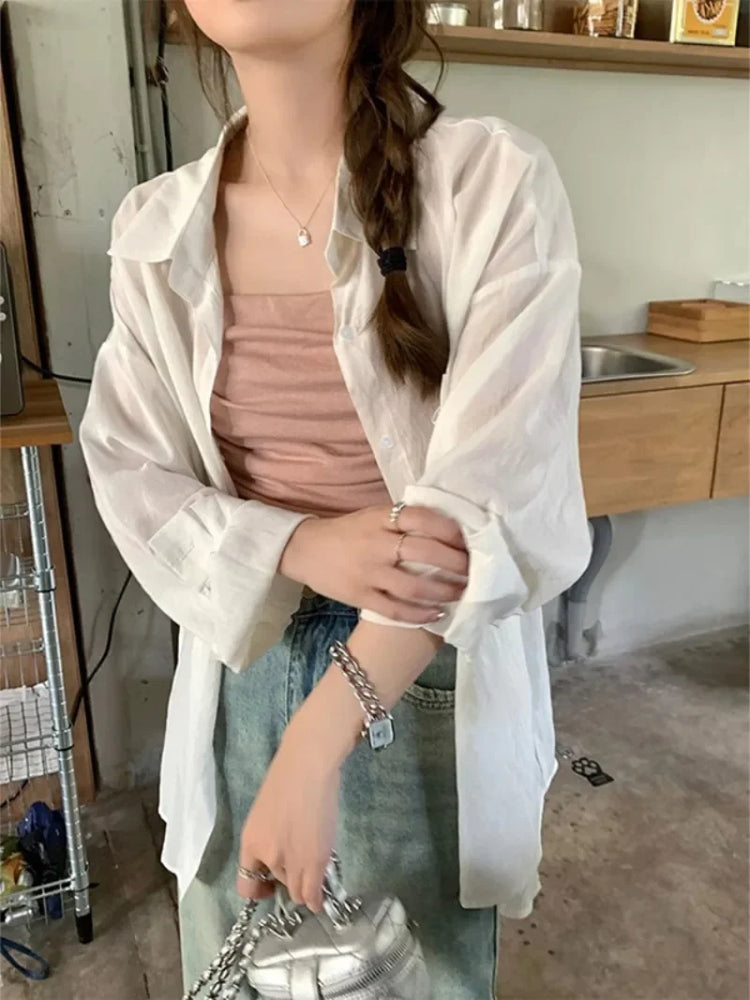 Korean Style Shirts Women Summer Candy Color Long Sleeve Sun-proof Breathable Loose Outwear Young Students All-match Popular Ins