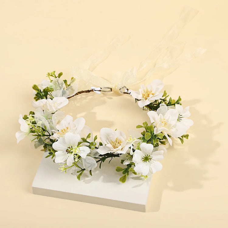 Light Purple Floral Headbands Boho Style Summer Beach Headdress Bride Wedding Flower Crown Ribbon Headwear Women Beach Hairbands