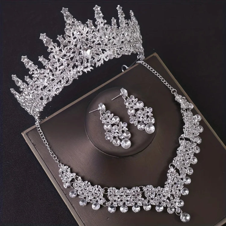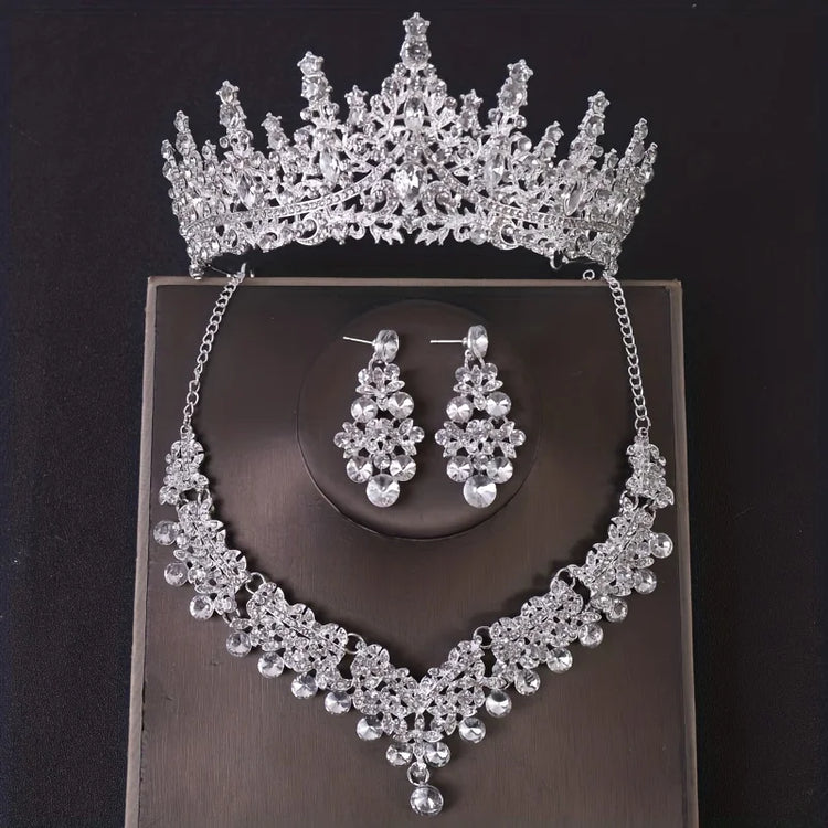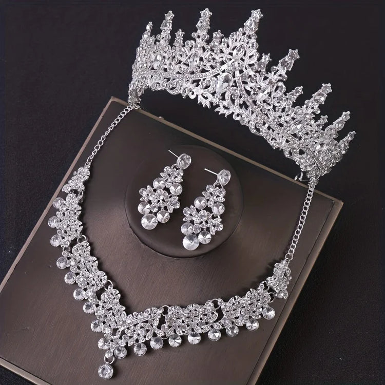 Luxury Crystal Crown Necklace Earring Set Rhinestone Bridal Jewelry Set Bridal Wedding Hair Accessories Jewelry Crown Tiara Gift