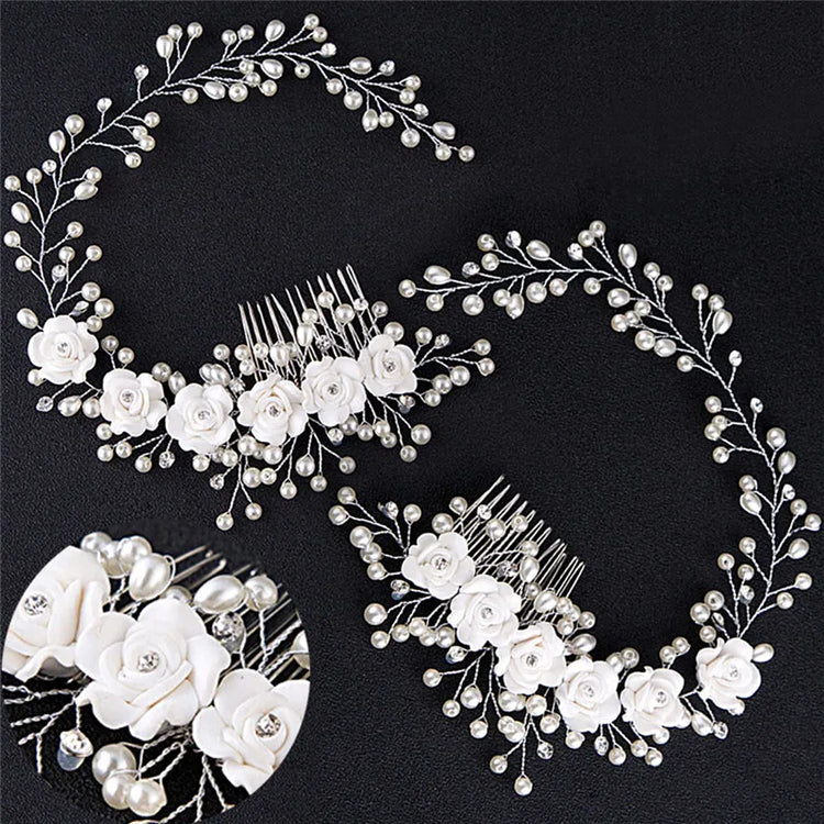 Made Hair Color Pearl Wedding Hair Combs Hair Accessories for Bridal Flower Headpiece Women Bride Hair ornaments Jewelry