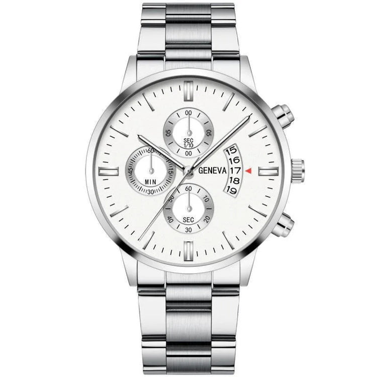 Elegant and robust, the stainless steel band offers a sleek look and longevity.