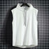 Men Tie Collar Hooded Sleeveless Vests Male Summer Loose Solid Hip Hop Tee Shirt Tops