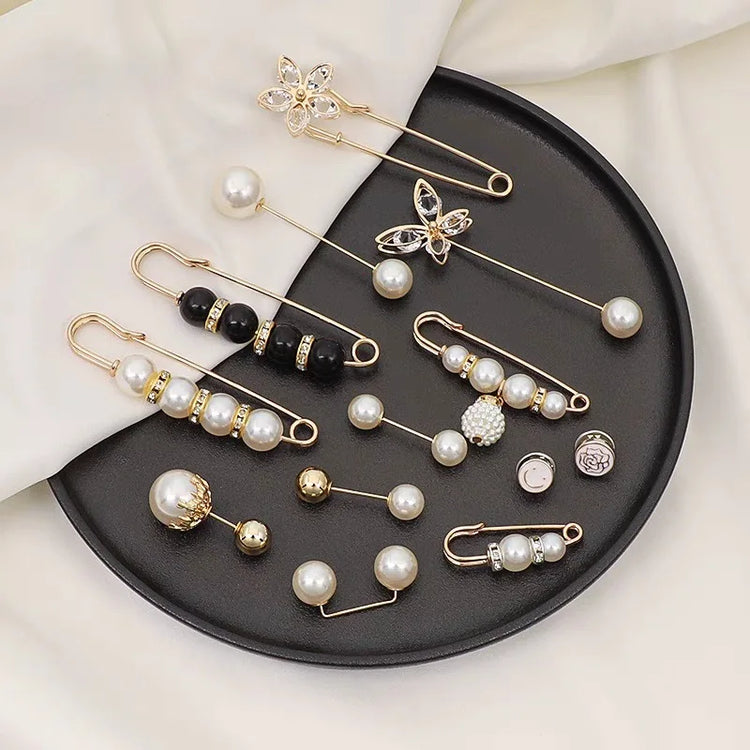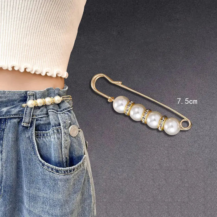 New Luxury Adjust Pearl Brooch Casual Waistband Tightener Neckline Pants Clip Women Dress Clothing Decor