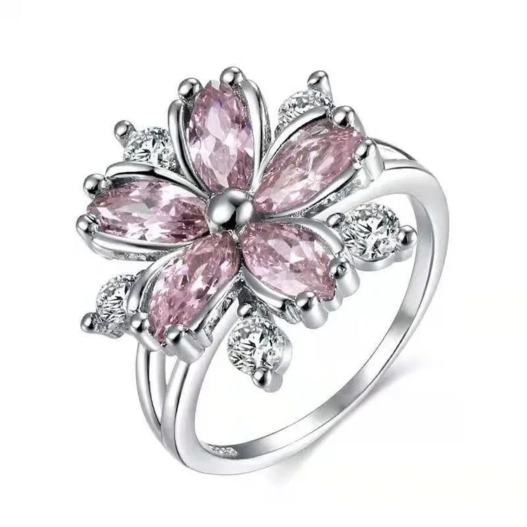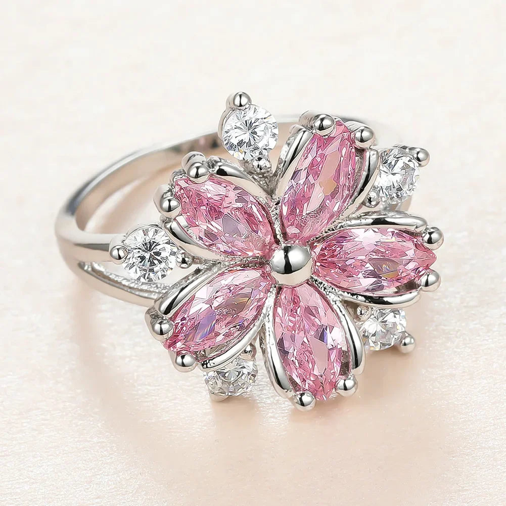 New Shiny Luxury Zircon Ring Bridal Wedding High Quality Wedding Accessories Flowers Pink Color Jewelry Headwear Wholesale