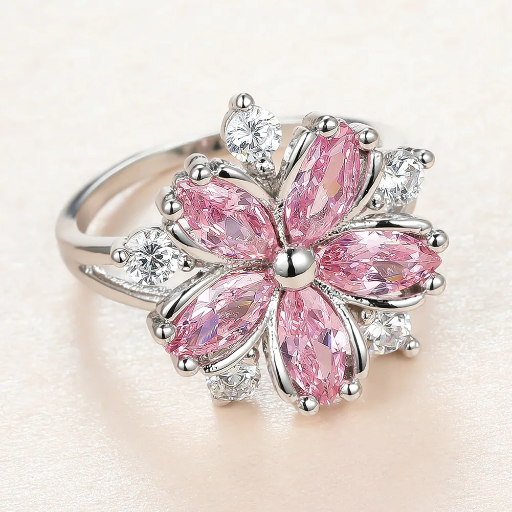 New Shiny Luxury Zircon Ring Bridal Wedding High Quality Wedding Accessories Flowers Pink Color Jewelry Headwear Wholesale