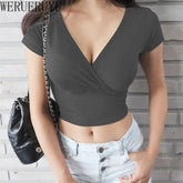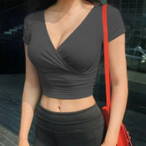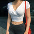 New Summer Black Sexy V-neck T-shirt Short Sleeve Y2k Crop Top Women Clothes Streetwear Korean Fashion Corset Tops Tshirts 2023