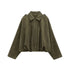 PB&ZA 2025 Women's Faux Suede Collared Jacket – Stylish Loose Fit in Olive Green