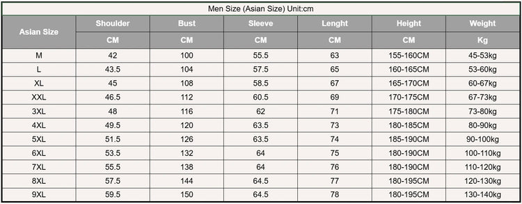 Men Size (Asian Size) Unit:cm  |