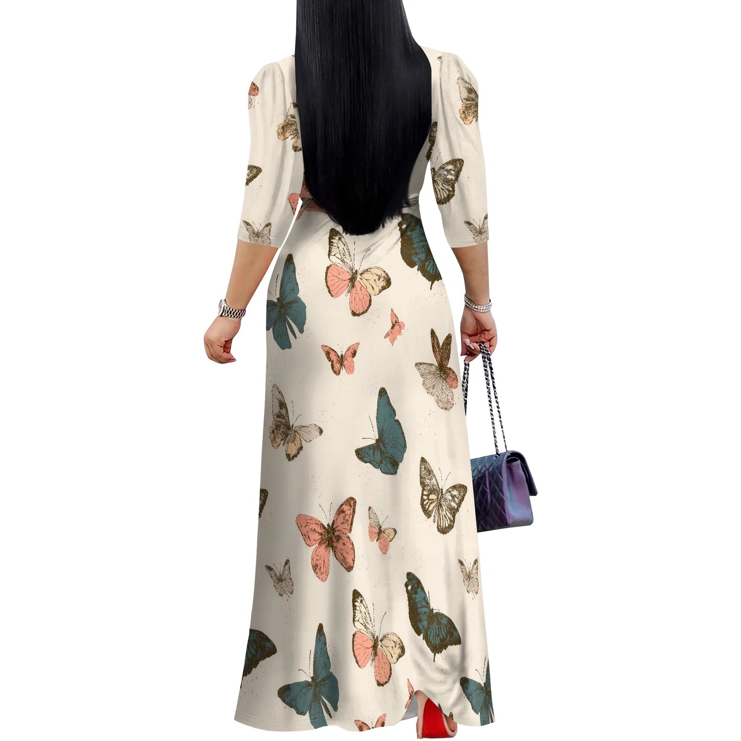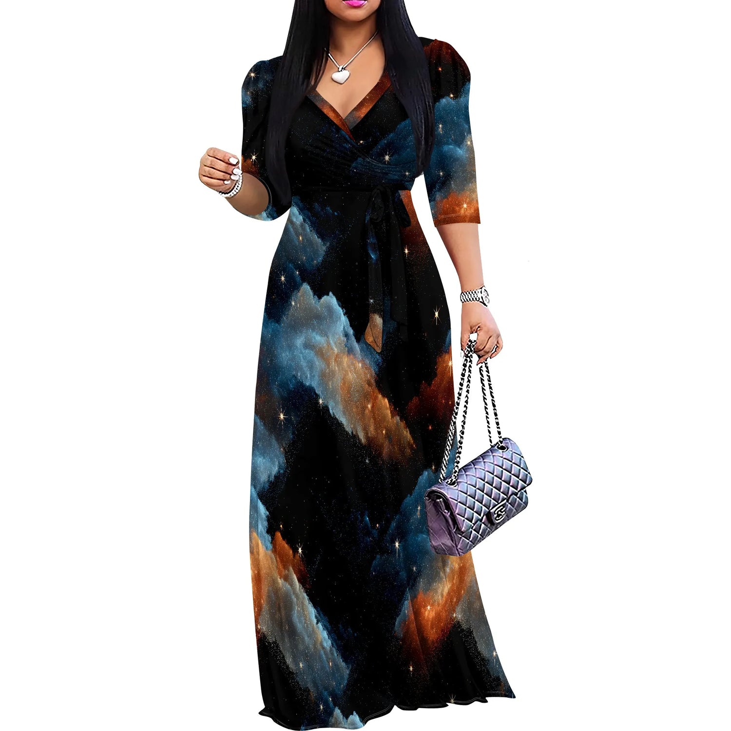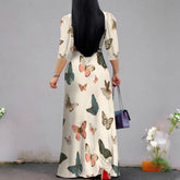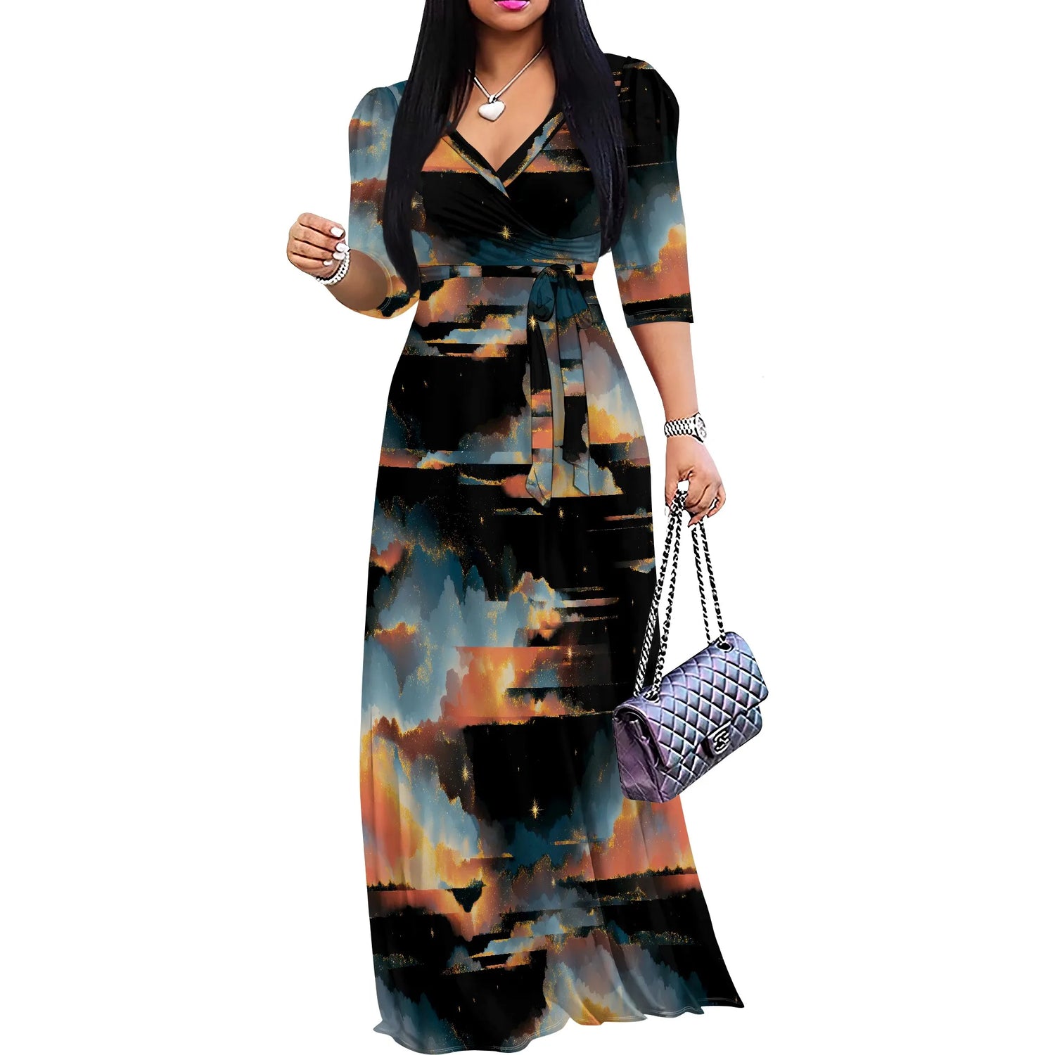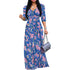 Plus Size Maxi Dresses for Women Casual Flowy Long Dress 3/4 Sleeve V Neck Wrap Dress with Belt