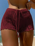 Polyester100.00% Hollow Drawstring Open Waist Knitted Bikini Blocked Women's Shorts