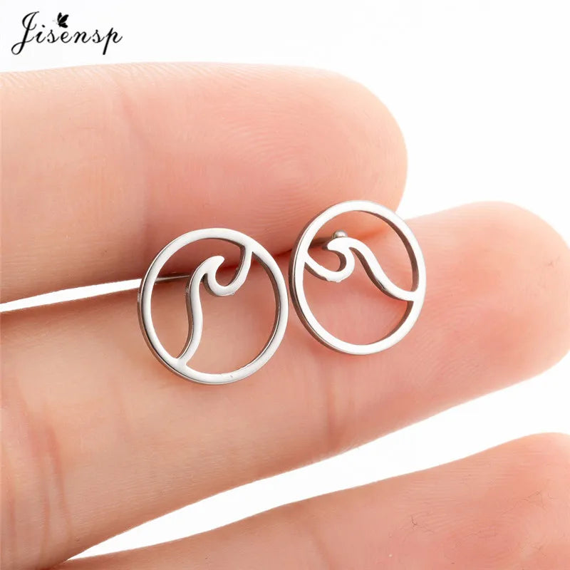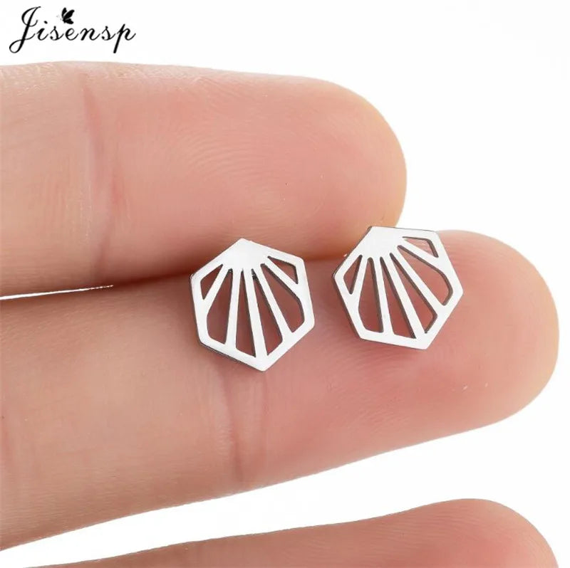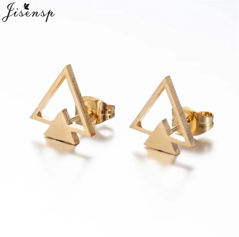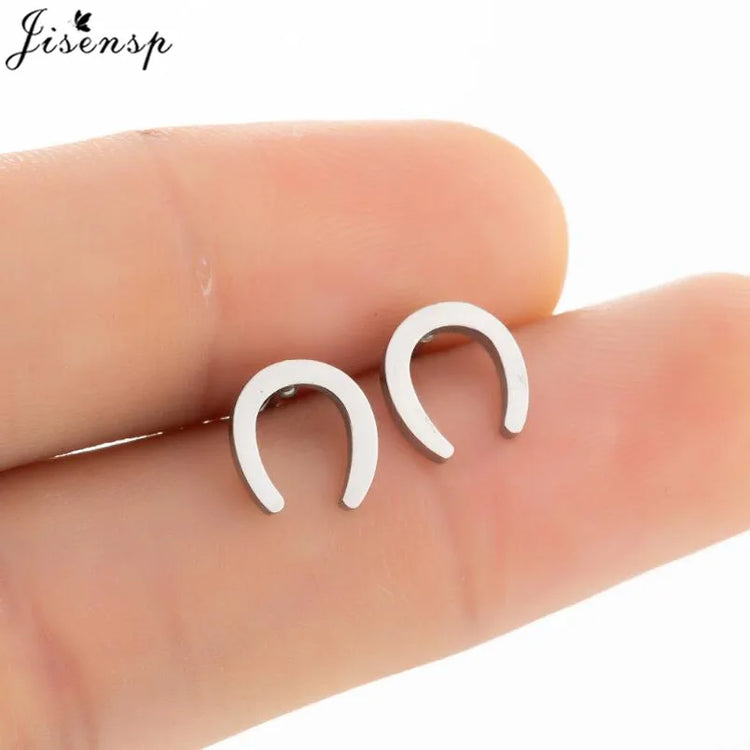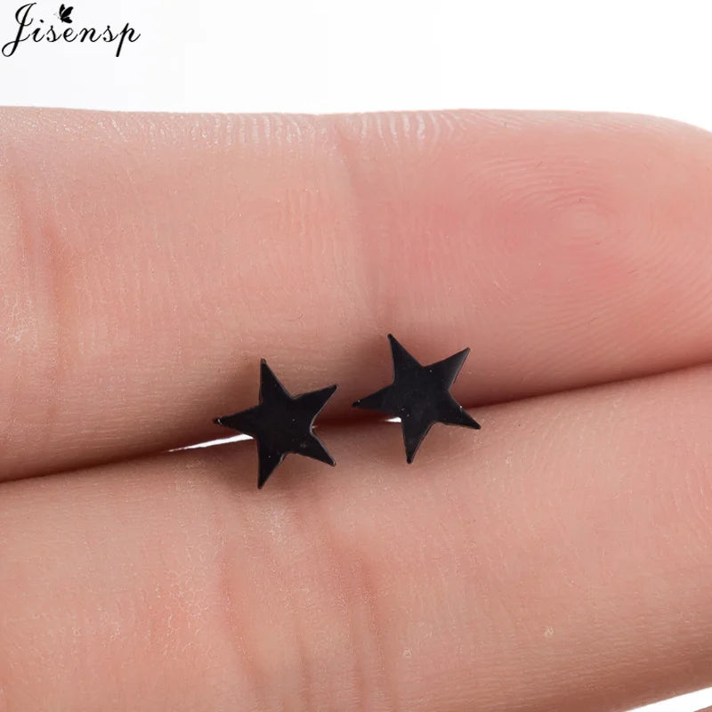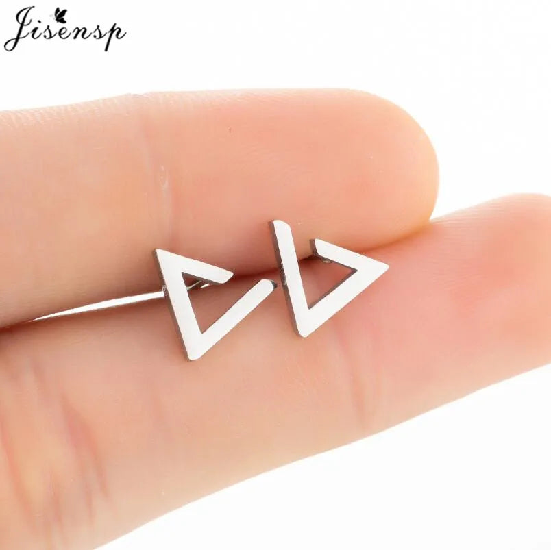 Punk Black Geometric Stainless Steel Earrings Women Triangle Heart Wave Stud Earring U Shaped Ear Piercing Jewelry Pendientes
