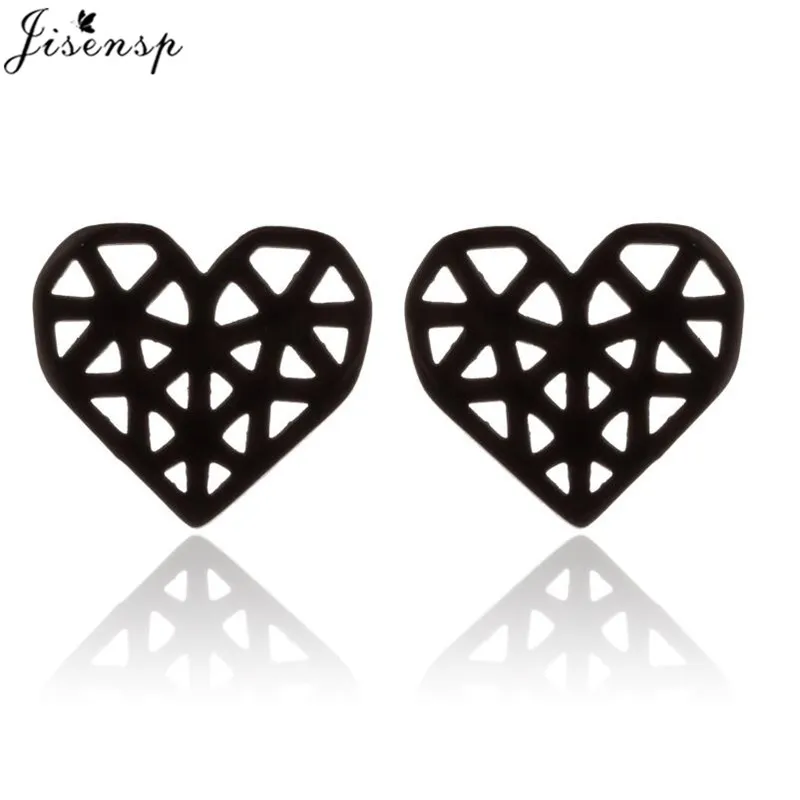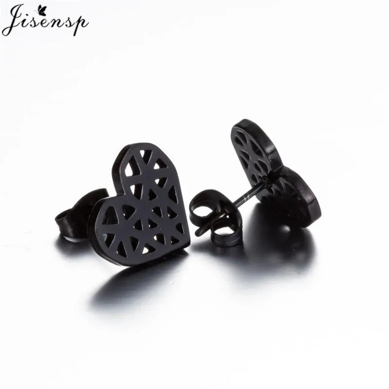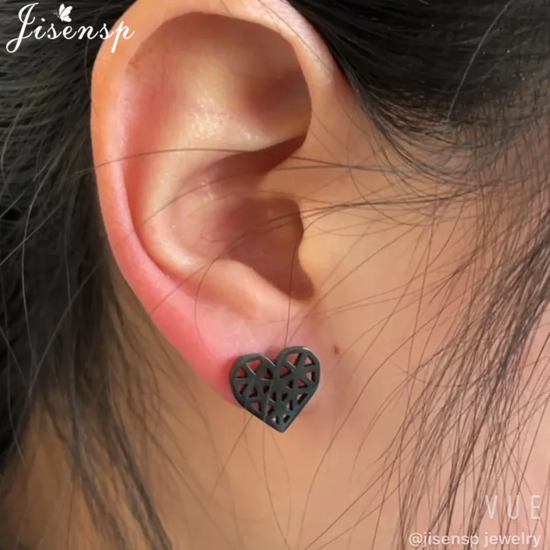 Punk Black Geometric Stainless Steel Earrings Women Triangle Heart Wave Stud Earring U Shaped Ear Piercing Jewelry Pendientes