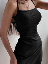 Sexy Black Long Bodycon Dress Women Summer Sleeveless Blackless Halter Neck Spaghetti Strap Dresses High Split Vestidos