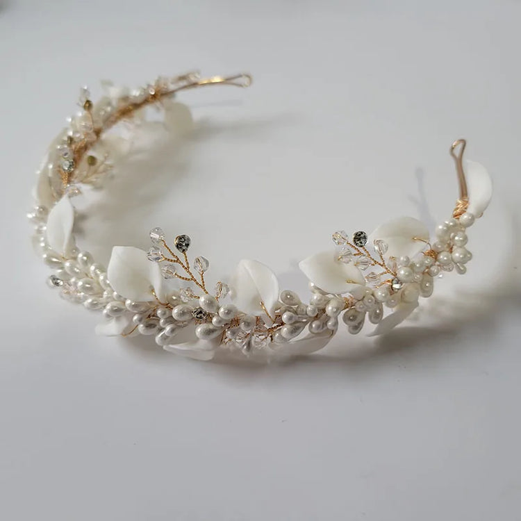 SLBRIDAL Handmade Ins Style Luxury Rhinestone Crystal Porcelain Flower Bridal Tiara Wedding Bridesmaids Crown Women Hair Jewelry