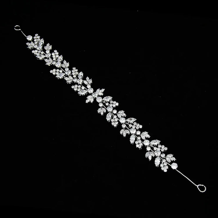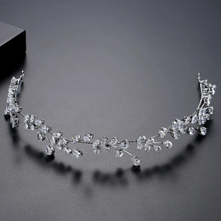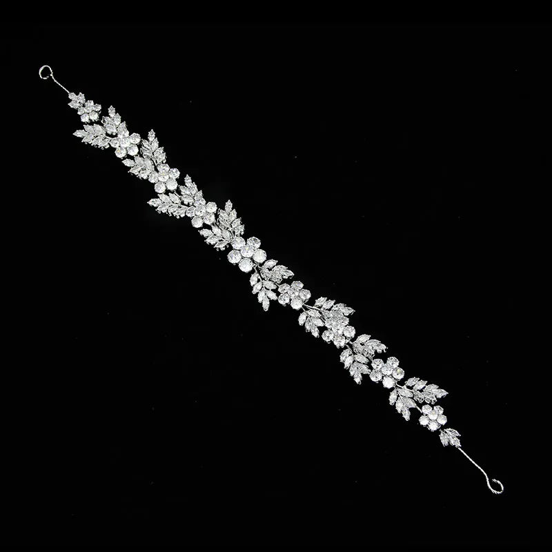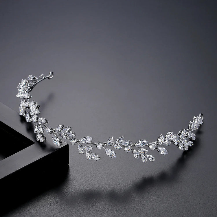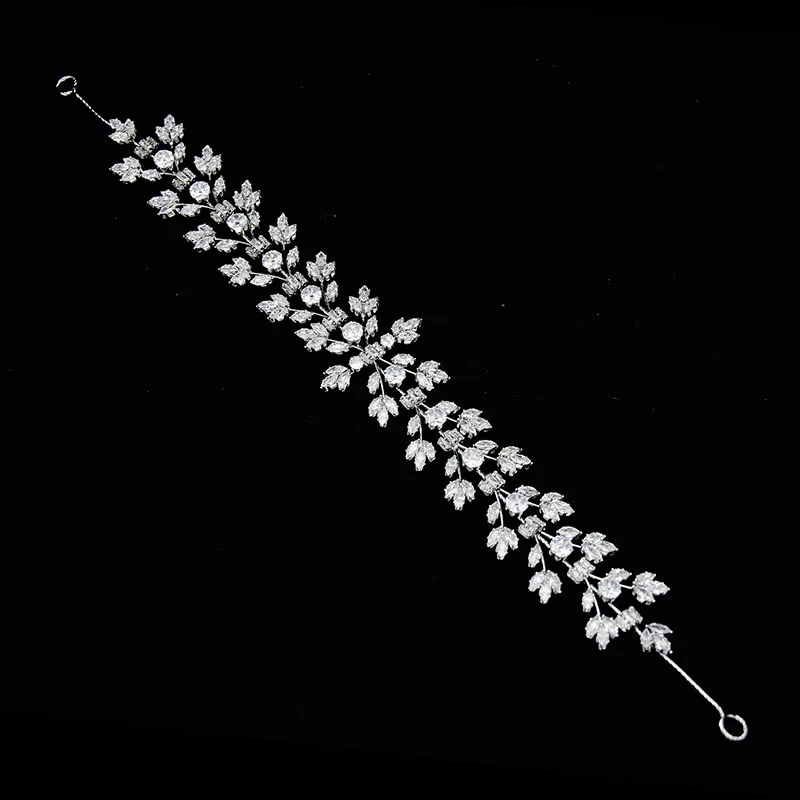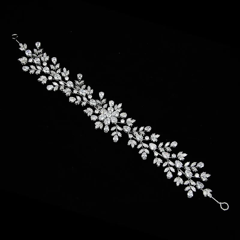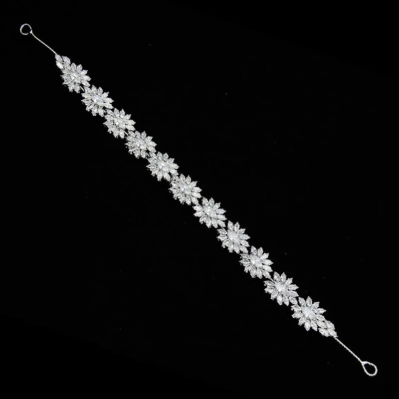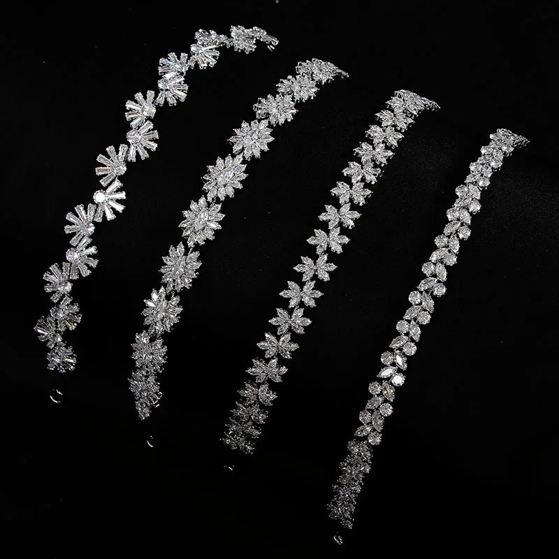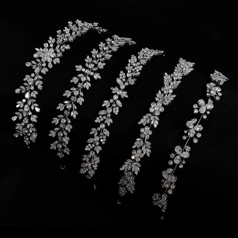 SLBRIDAL Luxury Flexible Cubic Zircon Bridal Tiara Headband Wedding Bridesmaids Crown CZ Hair Accessories Women Party Jewelry