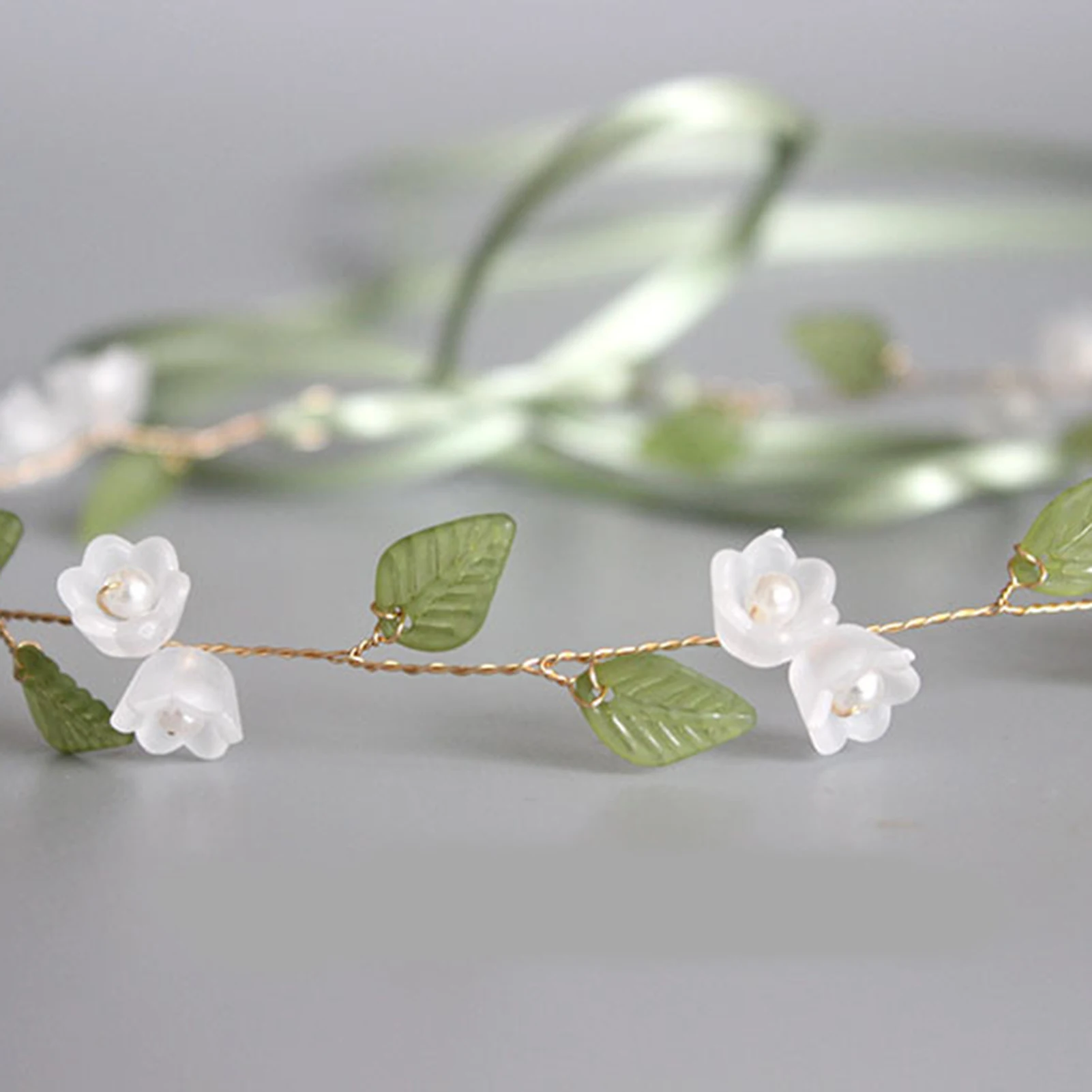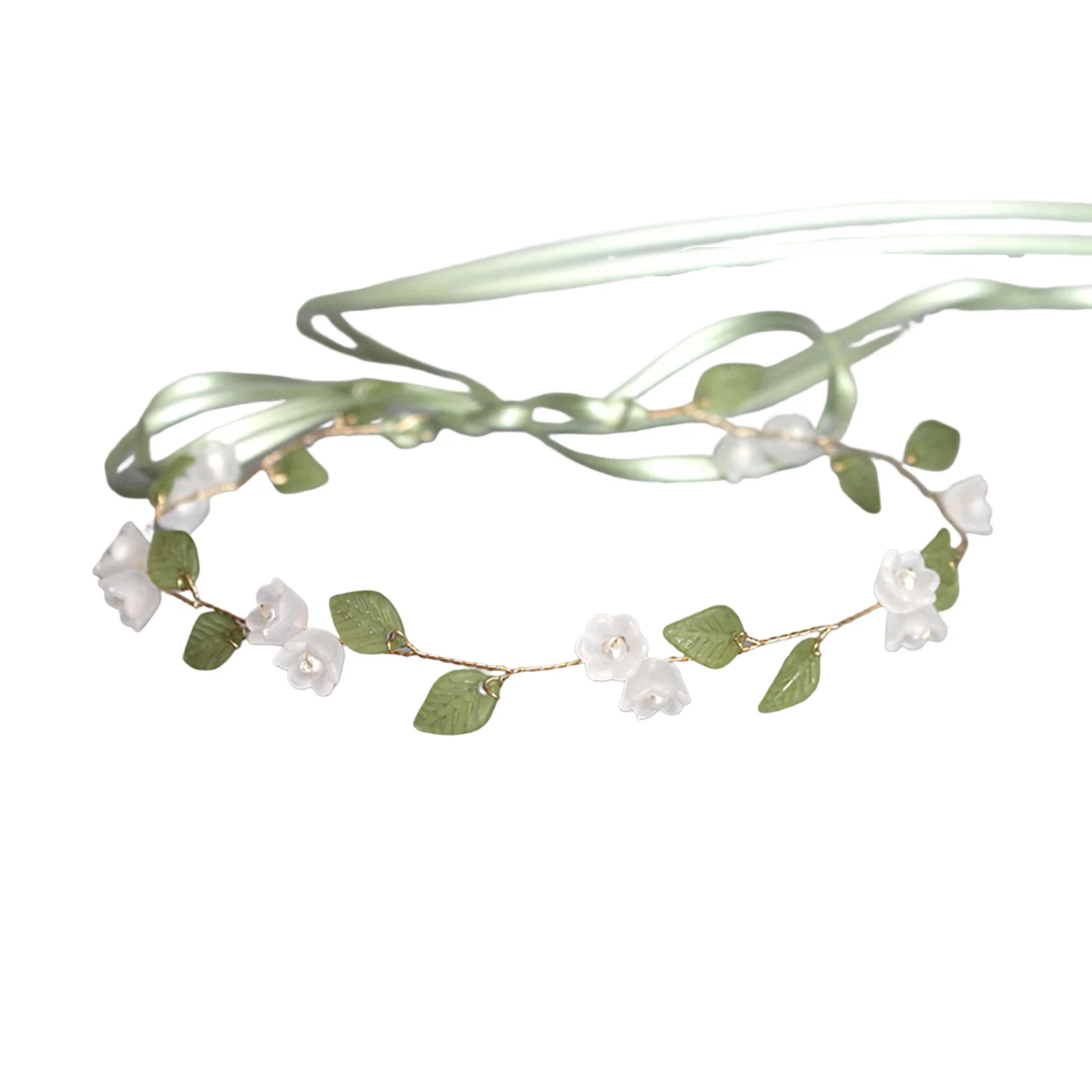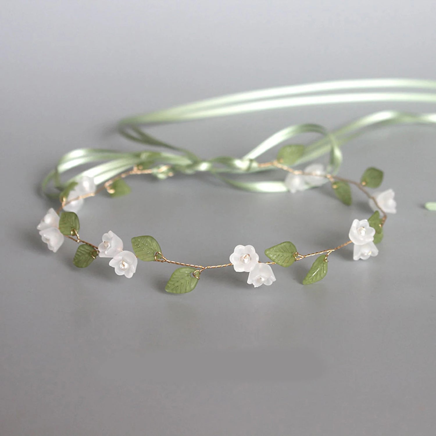 Spring Flower Headbands for Women Girls Hair Accessories White Flower Green Leaf Hairbands Simple Tiaras and Crowns Hair Jewelry