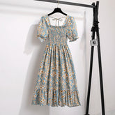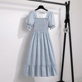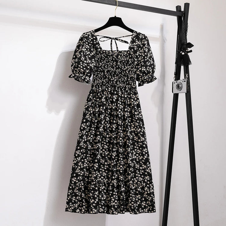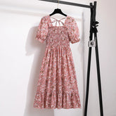 Spring Summer Chiffon Dresses Fashion Female Elastic Waist Short Sleeve Pleated Casual Dress Women A-line Dresses Vestidos