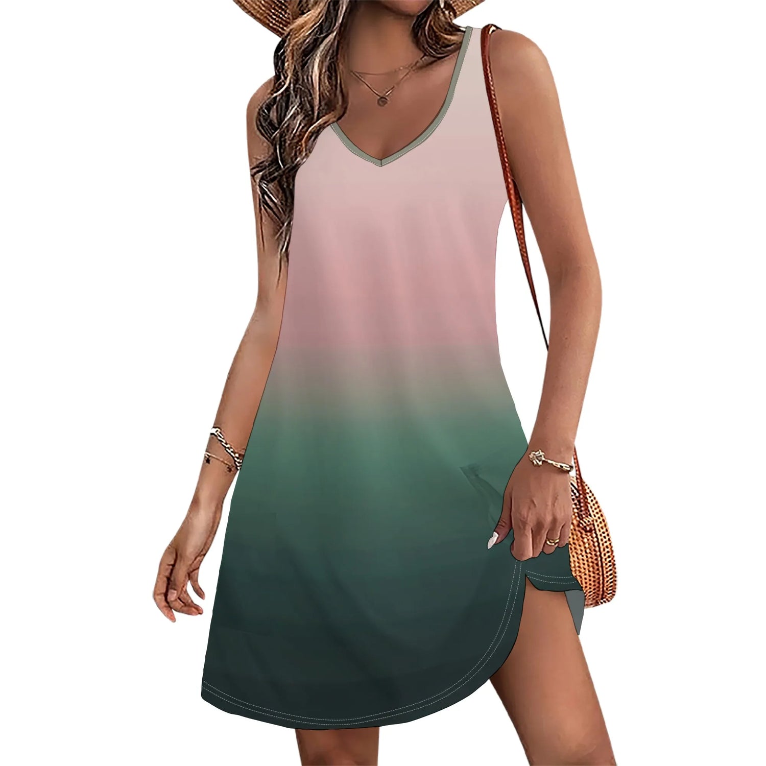 Sundresses for Women 2025 Summer Casual V Neck Sleeveless Sun Dresses Boho Tank Dress Beach Dresses with Pockets