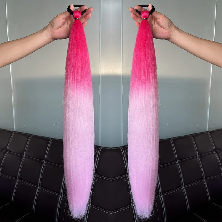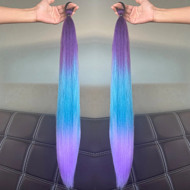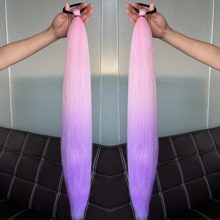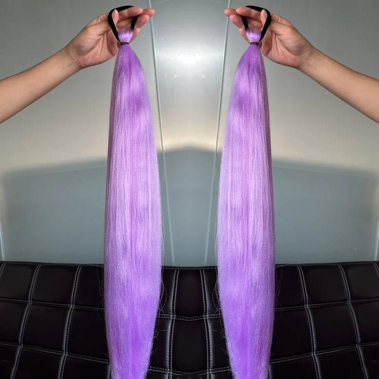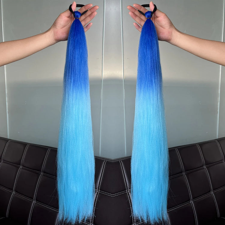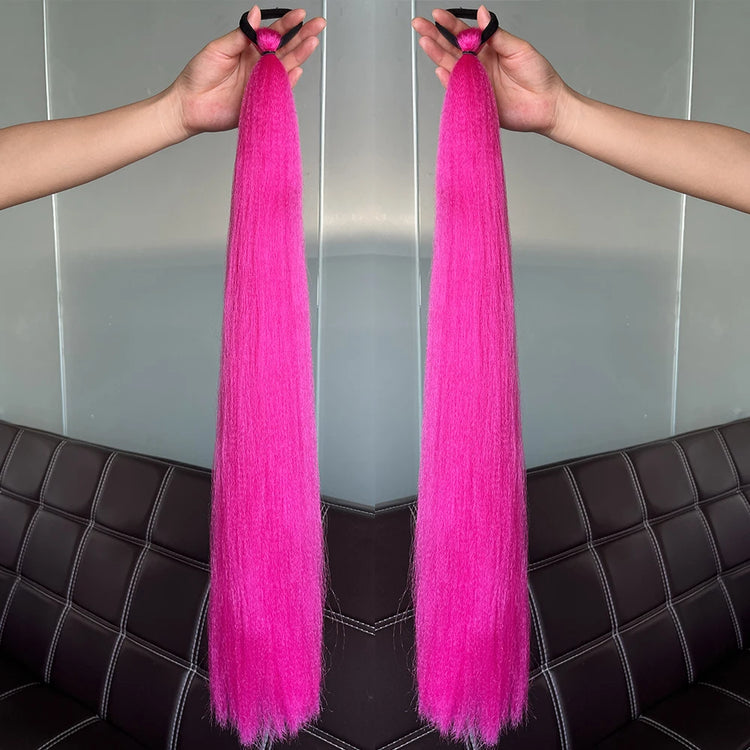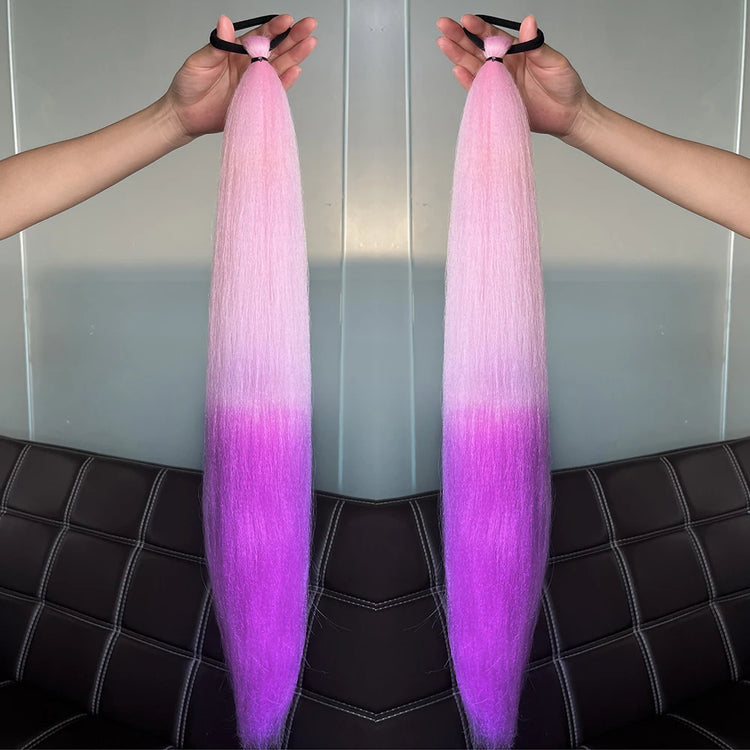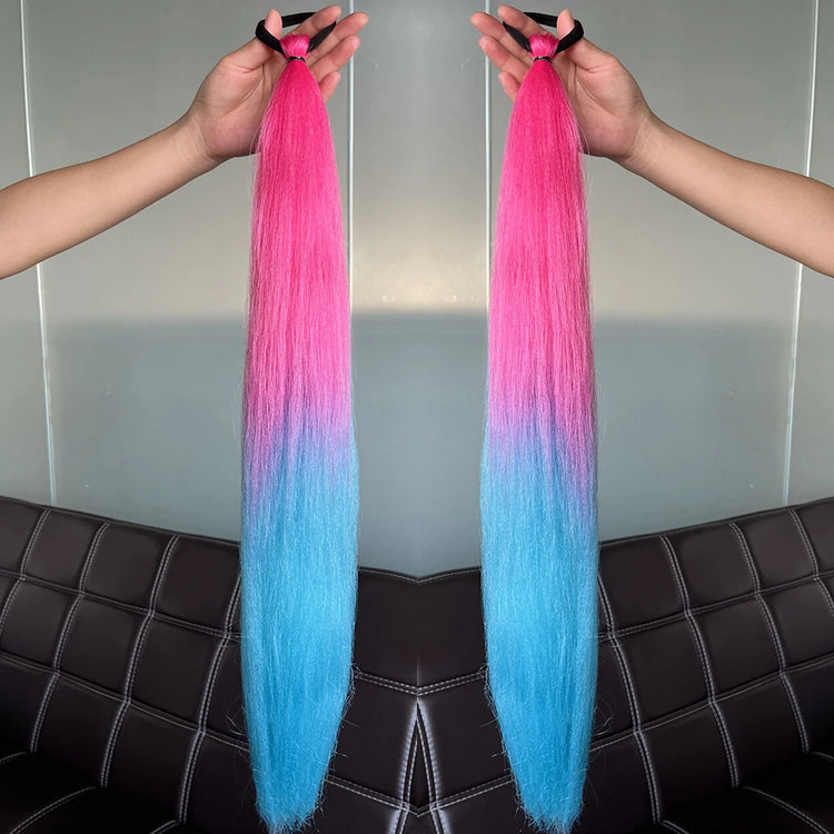 Synthetic 2Pcs Straight Ponytail With Elastic Hair Tie Colorful Braiding Ponytail Hair Extensions Hair Accessories For Women