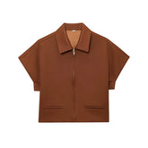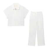 TFMLN Fashion Set For Women Summer 2025 New Slim Lapel Zipper Short Sleeve Coat Top Wide Leg Pants Two Piece Set Leisure Black