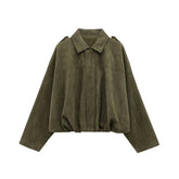 HH Women Brown Green Suede Jacket Loose Casual Bomber Coat Lapel Zipper Long Sleeve Jackets Vintage Lady Motorcycle Outwears