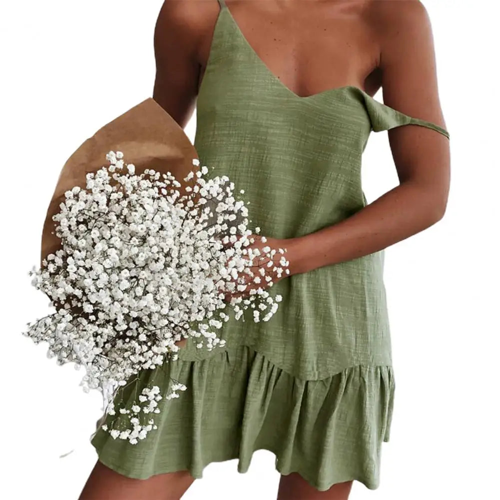 V Neck Summer Dress for Dating Women Dress Solid Color Flounce Edge Spaghetti Strap Women Party Dresses