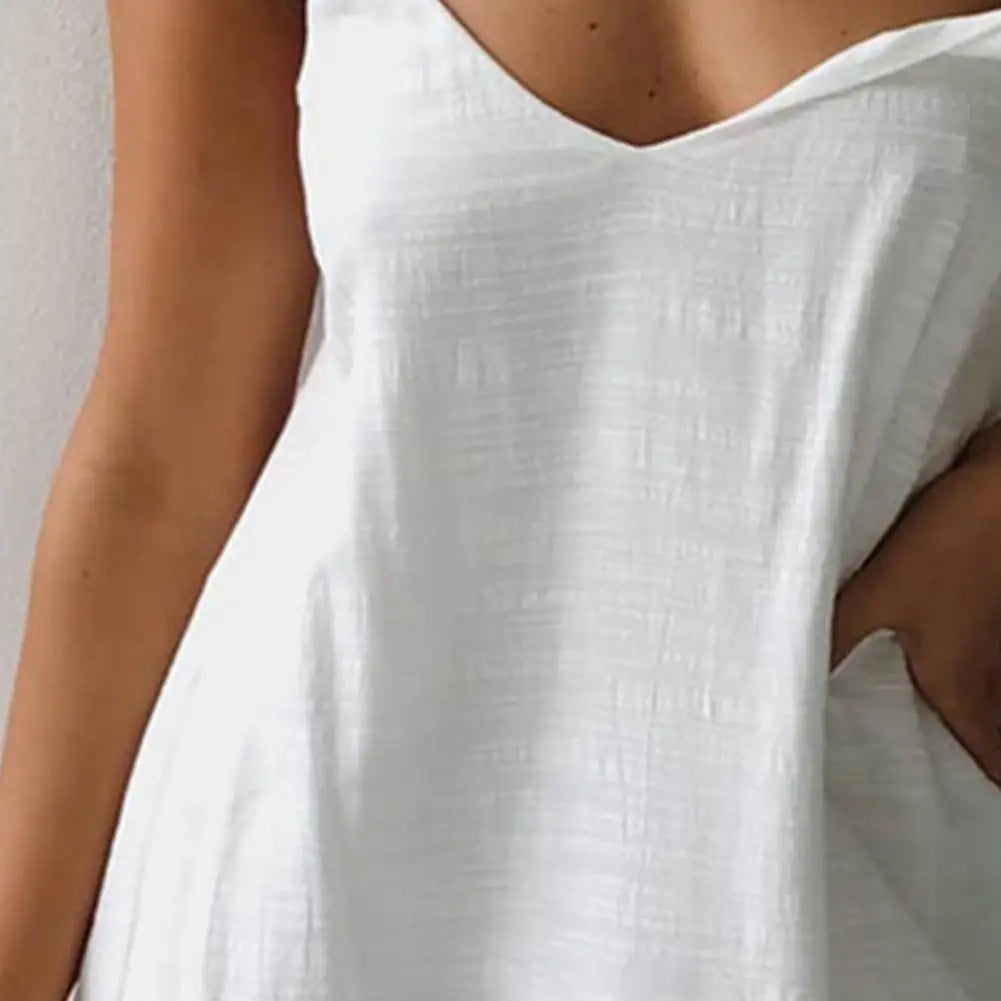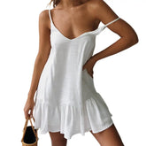Lady Dress Solid Color Flounce Edge Spaghetti Strap V Neck Summer Dress for Dating