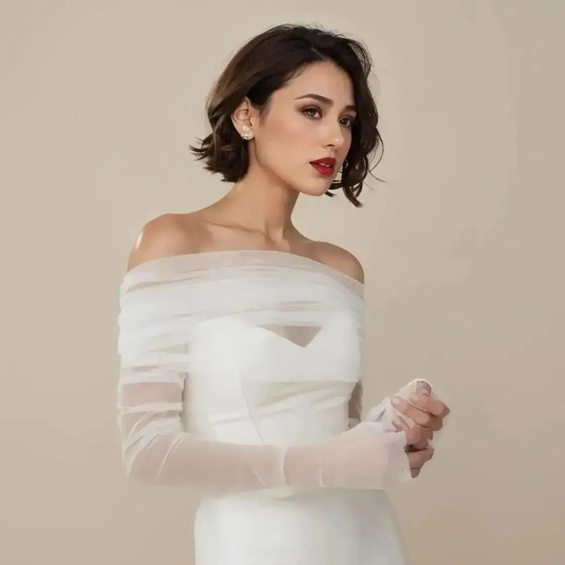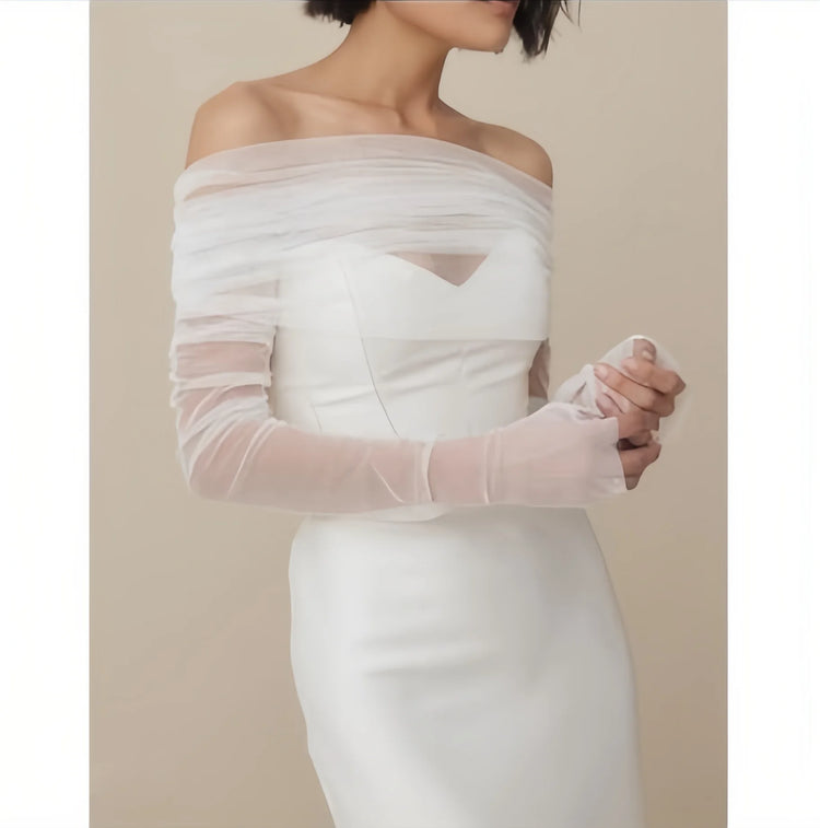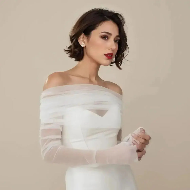 VG73 Bride Wrap Set Detachable Sleeve Bridal Shoulders Wedding Cover Party Bolero Woman Transparent Jacket Removable Gloves