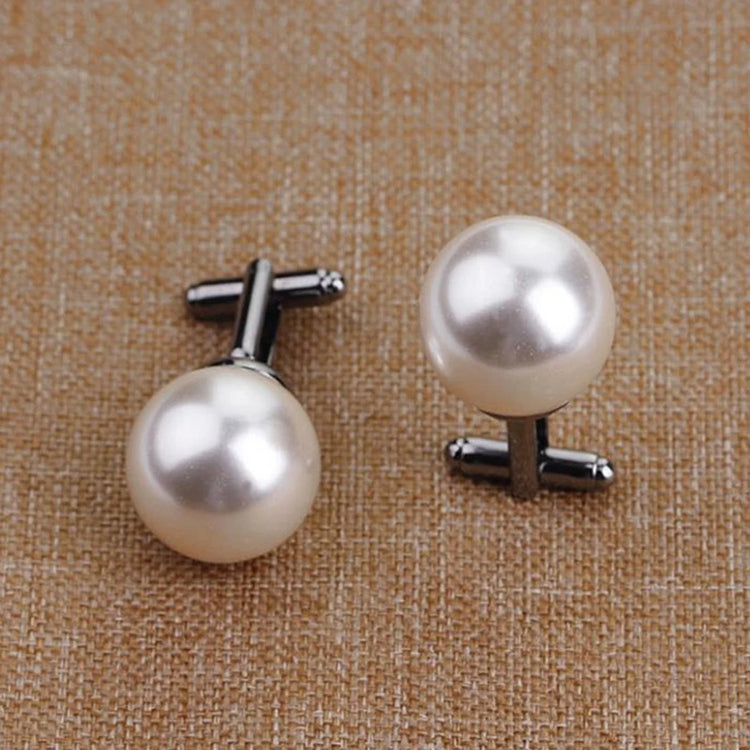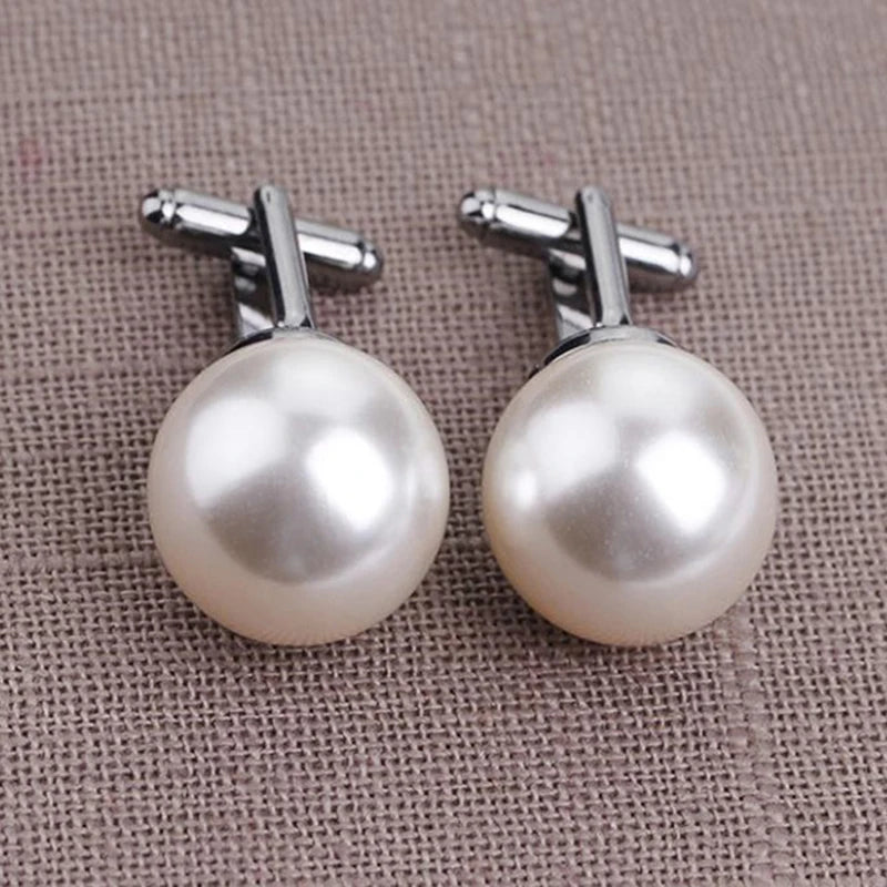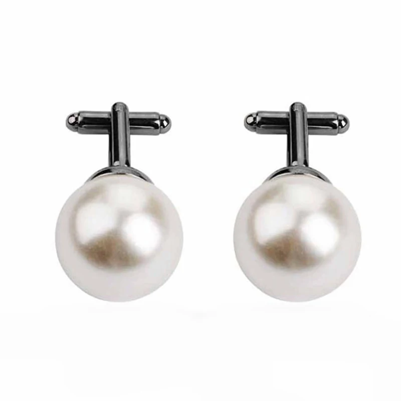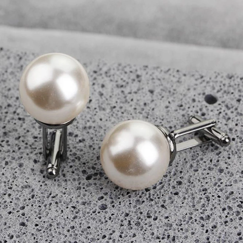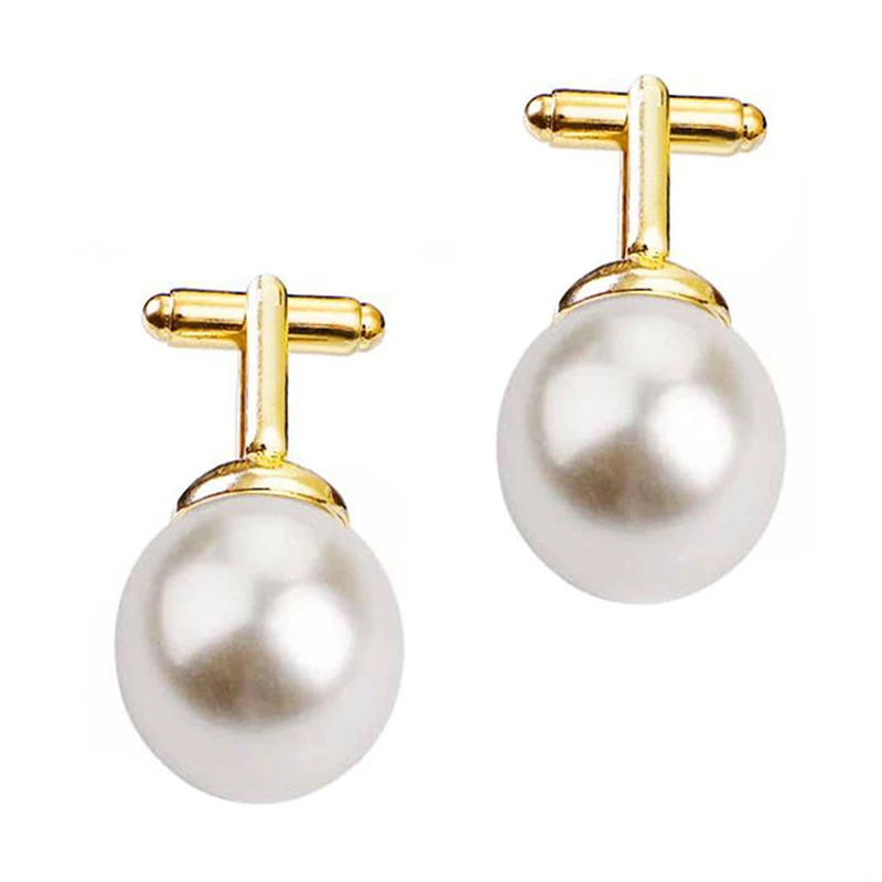 Vintage Beads Cufflinks For Men Round White Imitation Pearl Cuff Link Women Suit Concise Business Cufflink Wedding Party Cuflink