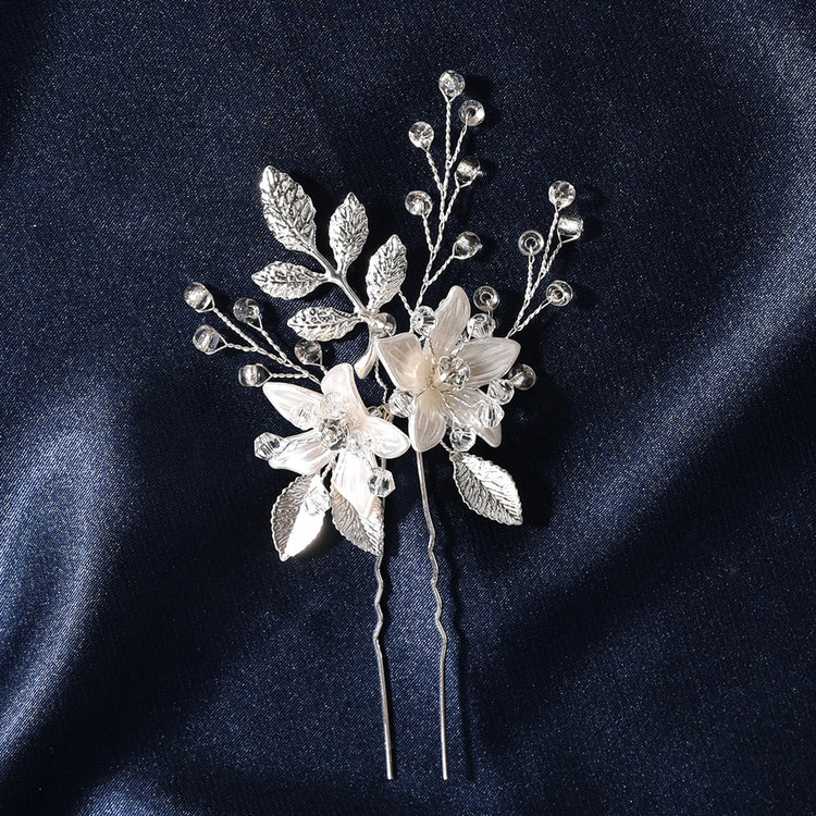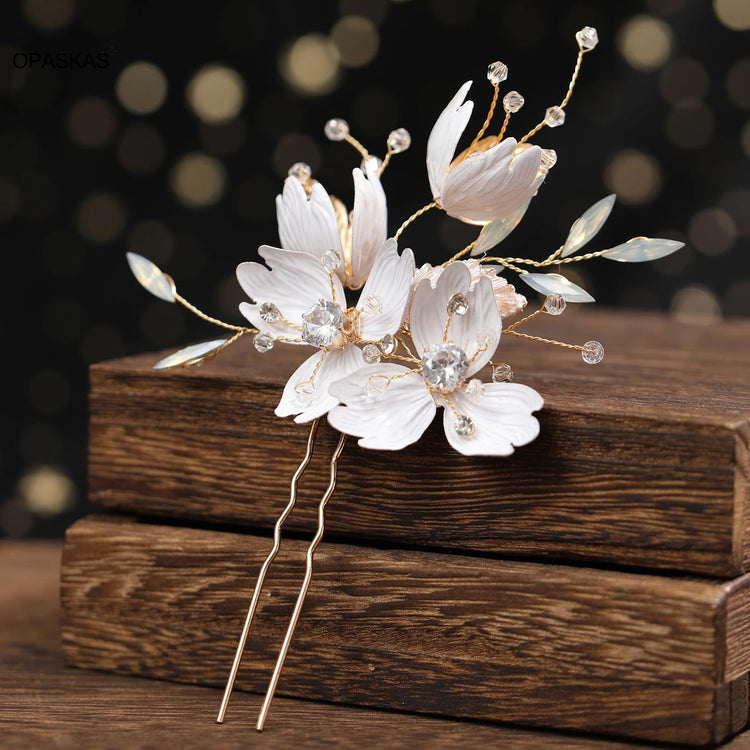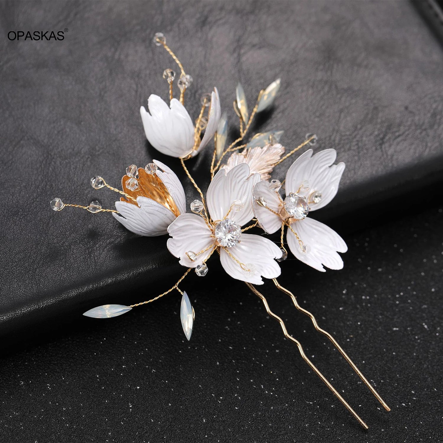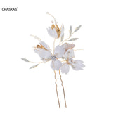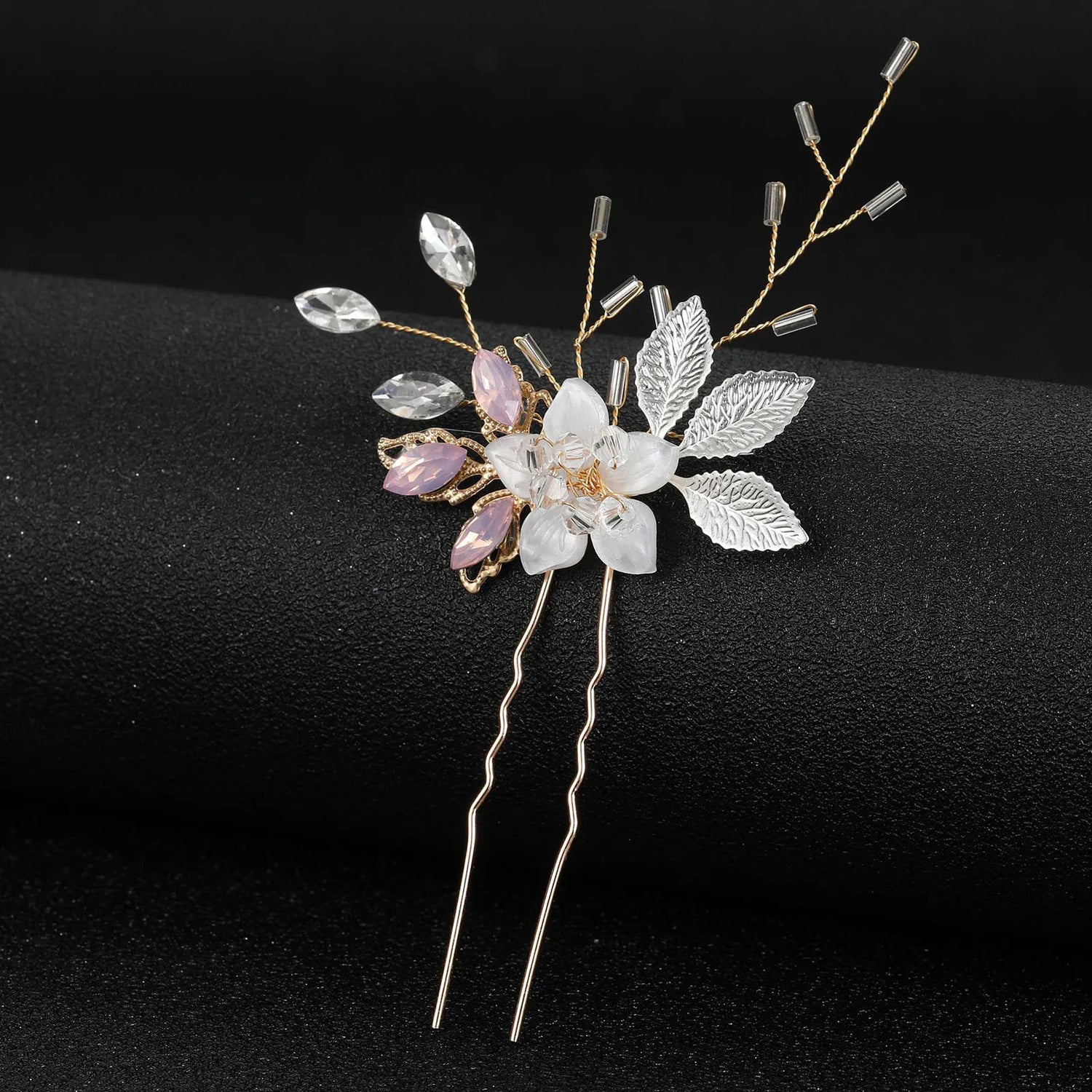 Wedding Floral Hairpin Hair Clip For Women 1pc Fashion U-shape Crystal Hair Fork Bride Tiaras 2023 Noiva Crown Headdress Jewelry