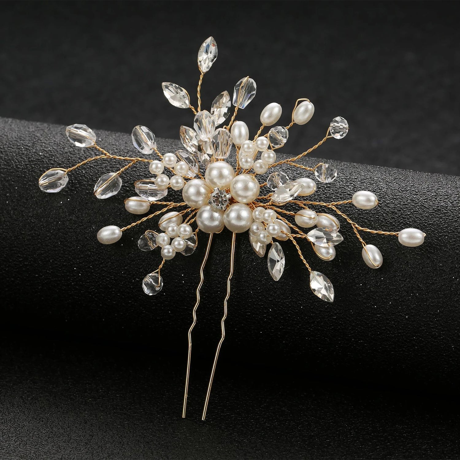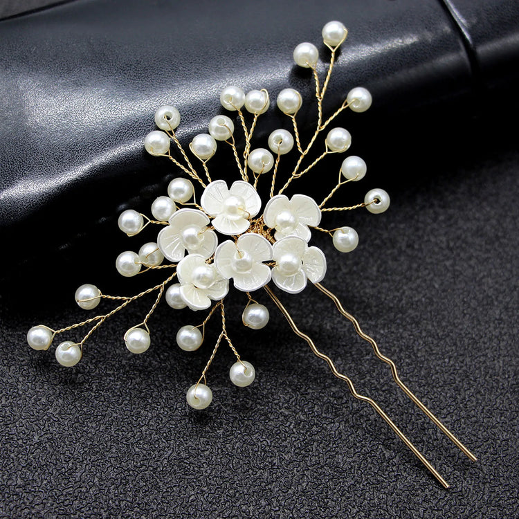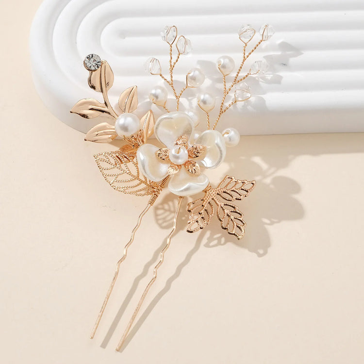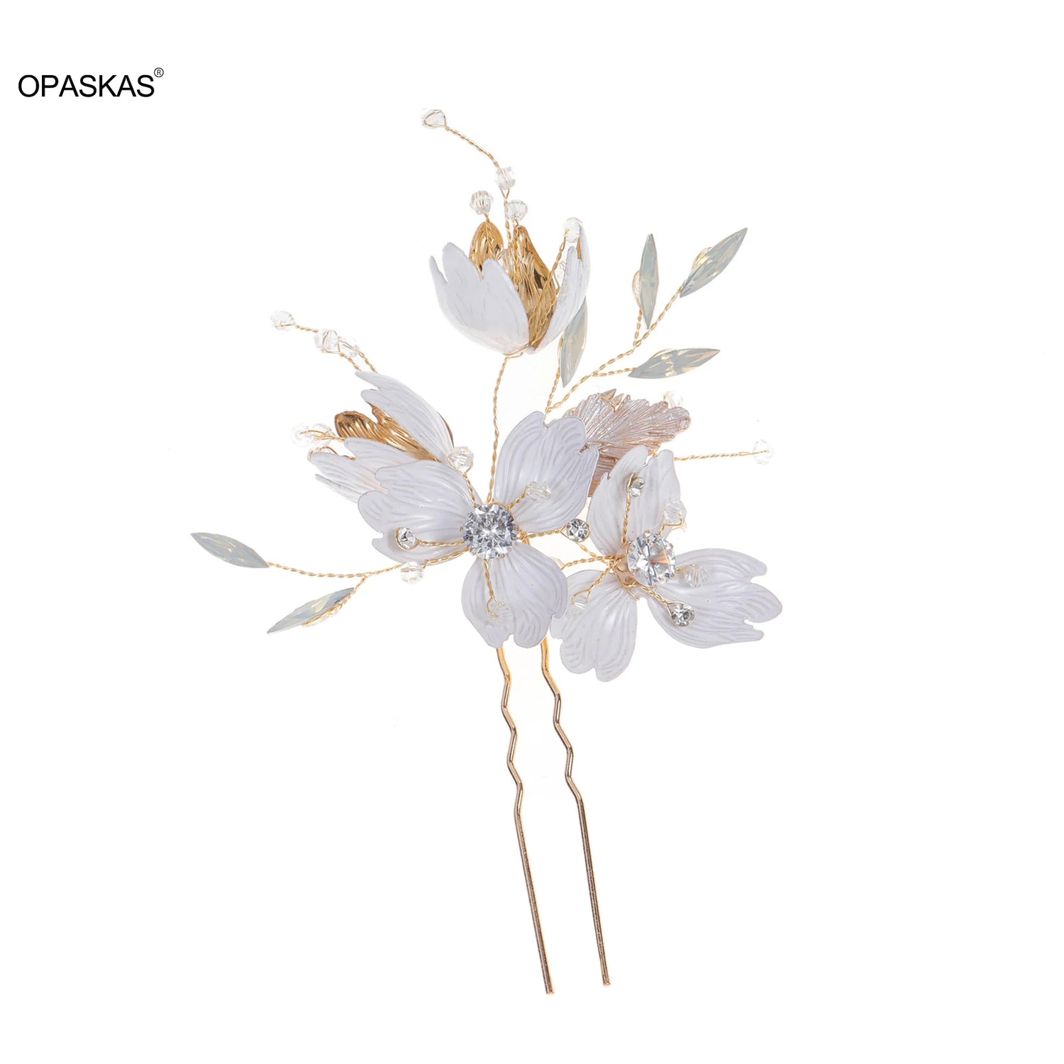 Wedding Floral Hairpin Hair Clip For Women 1pc Fashion U-shape Crystal Hair Fork Bride Tiaras 2023 Noiva Crown Headdress Jewelry