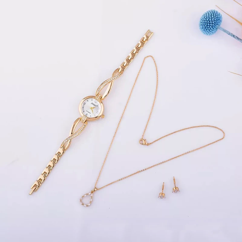 Woman watch 3pcs Set Women Bracelet Watches Casual Ladies Dress Wristwatch Earrings Necklace Suit Female Quartz Clock Gifts Box