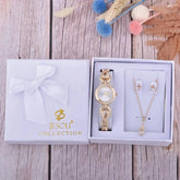 Woman watch 3pcs Set Women Bracelet Watches Casual Ladies Dress Wristwatch Earrings Necklace Suit Female Quartz Clock Gifts Box