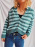 Women's Design Sense Round Neck Short Long-sleeved Sweater Jacket Top Autumn And Winter Elegant Button Striped Cardigan Sweater