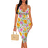 Women's Summer Bodycon Dress Sleeveless Spaghetti Strap Party Casual Pair Sexy Deep V Neck Floral Print Pencil Skirt