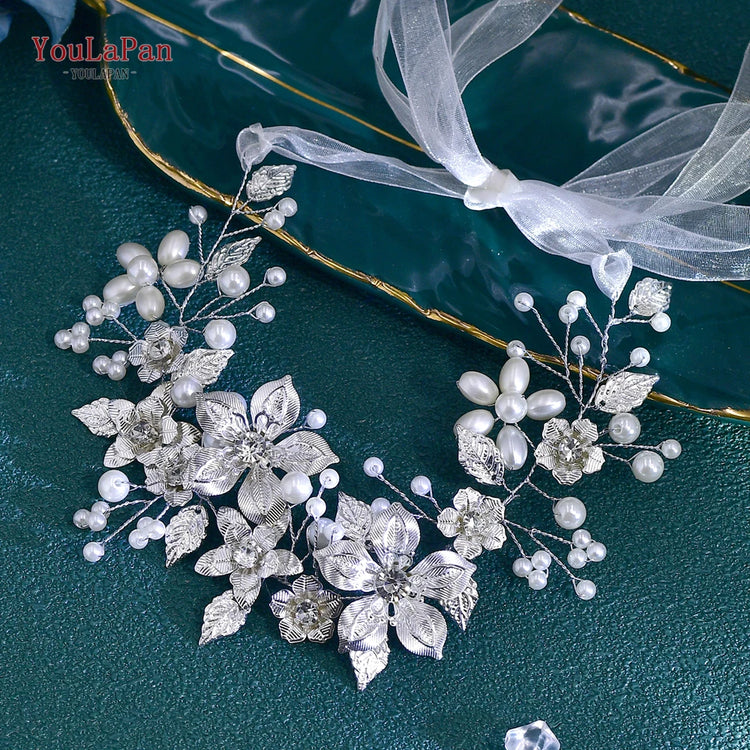 YouLaPan Handmade Rhinestone Woman Headband Bride Wedding Hair Accessories Head Jewelry Bridal Headpieces with Organza HP65