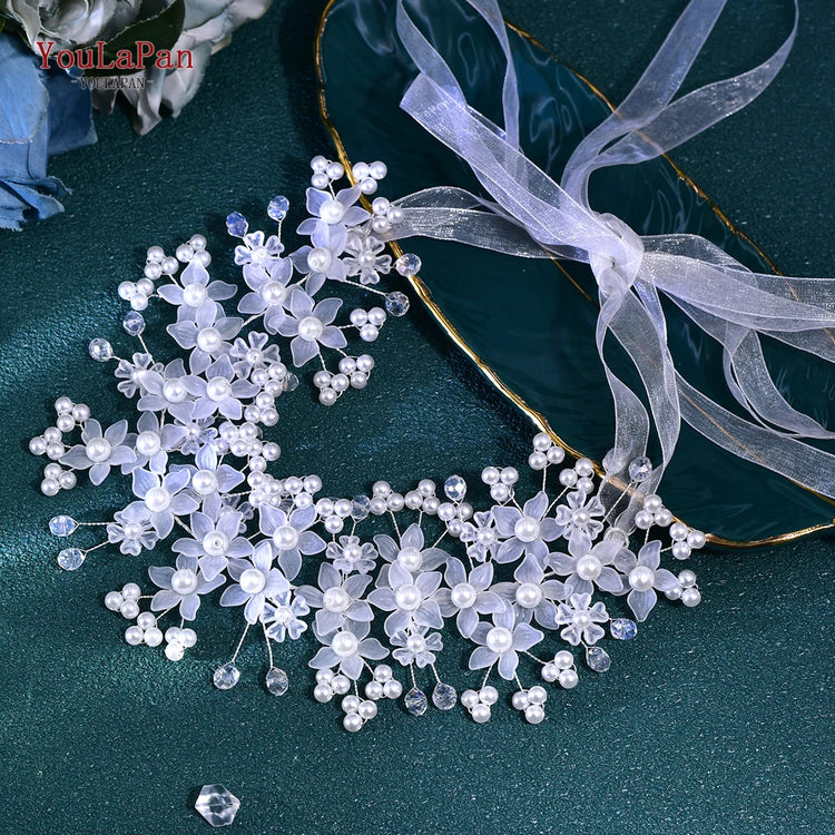 YouLaPan Handmade Rhinestone Woman Headband Bride Wedding Hair Accessories Head Jewelry Bridal Headpieces with Organza HP65